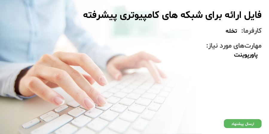من دانشجوي ارشد کامپيوتر هستم و يک پاورپنت خوب براي ارائه در درس شبکه هاي کامپيوتري پيشرفته مي خوام يک موضوع جالب هم مي خوام و کامل و عالي مي خوام دوستاني که دارن همچين چيزي رو و قبلا ارائه دادن پيشنهادات خودشونو بهم بدن دقت کنن دوستان لطفا سرچ نکنين چون واقعا کارهايي که پيدا ميشه مبتدي و ساده و بلا استفاده است پس دوستاني که مبحث کامل و کار شده اي رو دارن پيشنهاد بدن موضوع ارائه و تعداد صفحات رو حتما بگن و اينکه چند صفحه از فايل ppt رو به عنوان پيش نمايش پيوست کنن که ببينم چطور کار شده 3 يا 4 صفحه کفايت مي کنه!