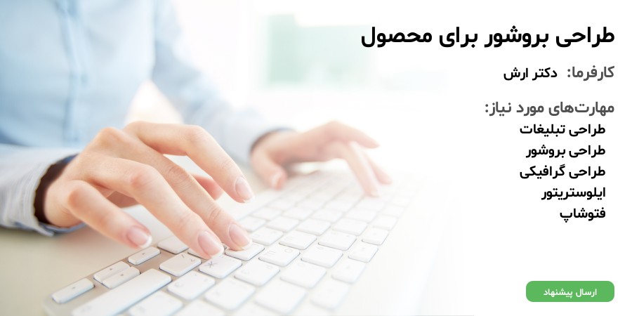 سلام . طراحي يک بروشور براي معرفي يک محصول جديد که در اون ويژگي هاي اون محصول ذکر خواهد شد . نياز به تصوير سازي گرافيکي دارد . تصوير سازي وکتور و اديت تصاووير در فتوشاپ . لطفا طراح ديد هنري خيلي خوبي داشته باشند ! چند نمونه بروشور از اينترنت ضميمه شده