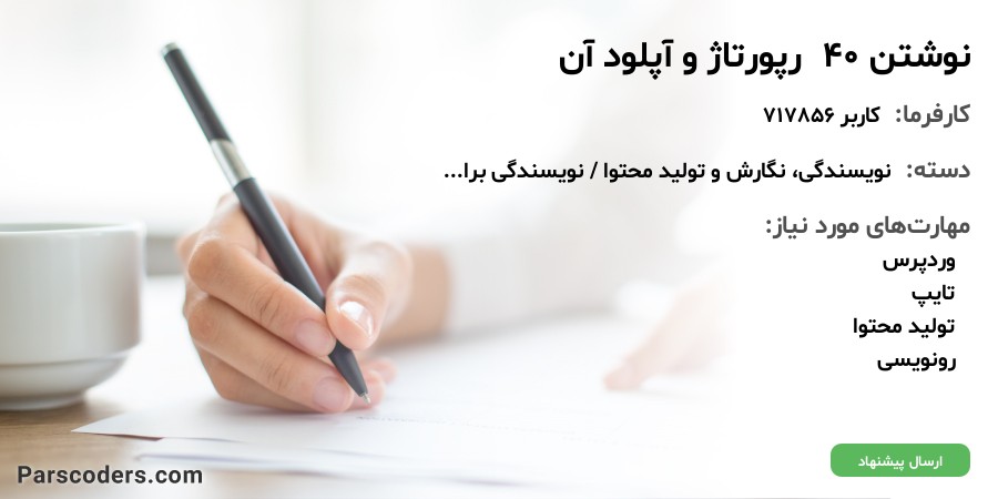 متأسفانه مهلت ارسال پیشنهاد این پروژه به پایان رسیده و پروژه بسته شده است؛ اما فرصتهای متعددی در سایت موجود میباشد.
