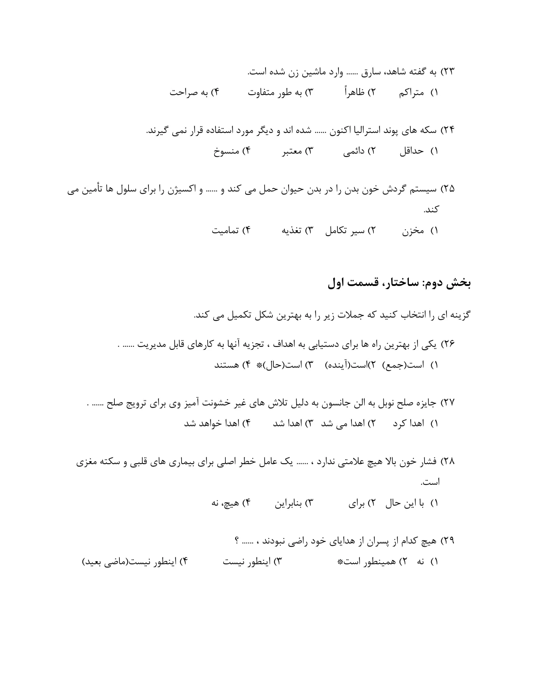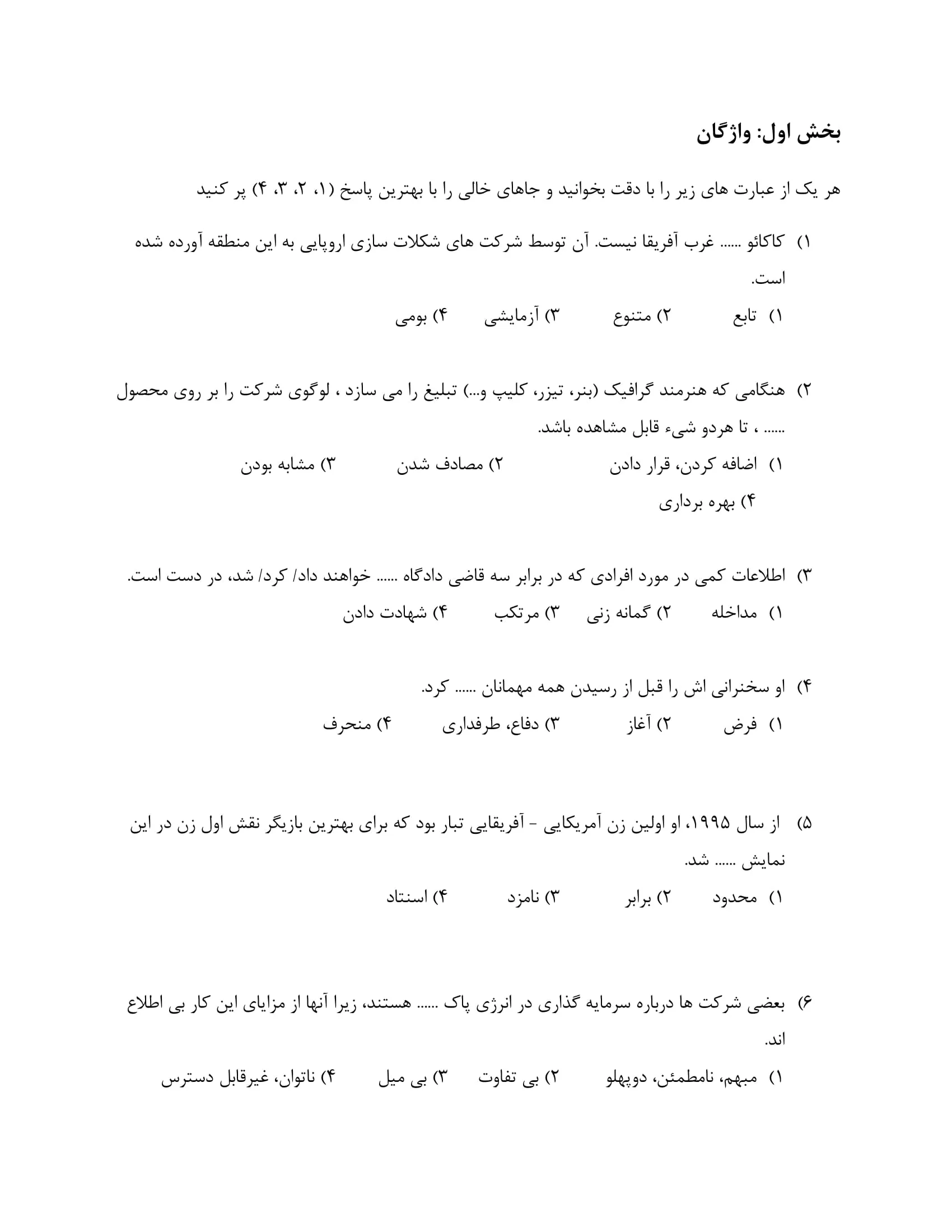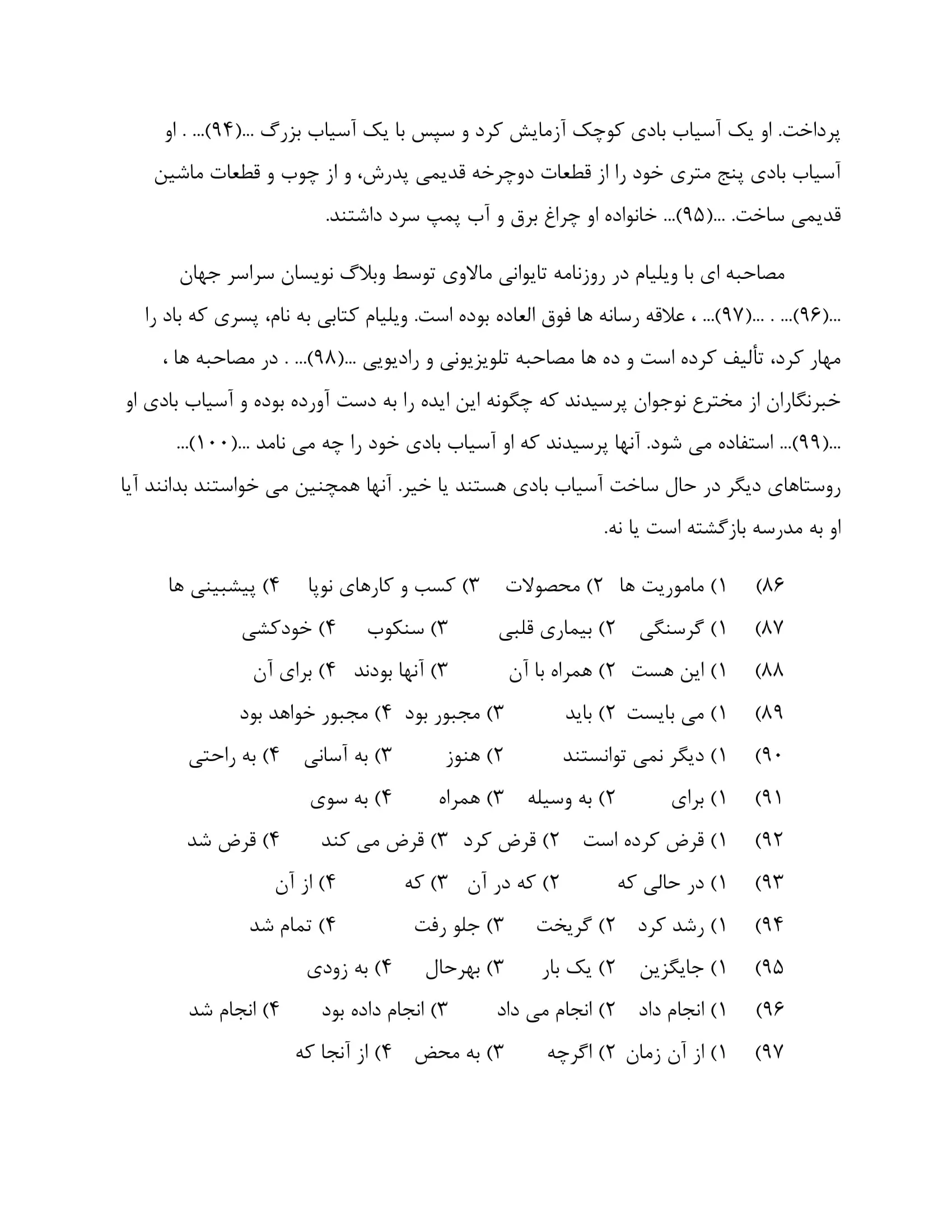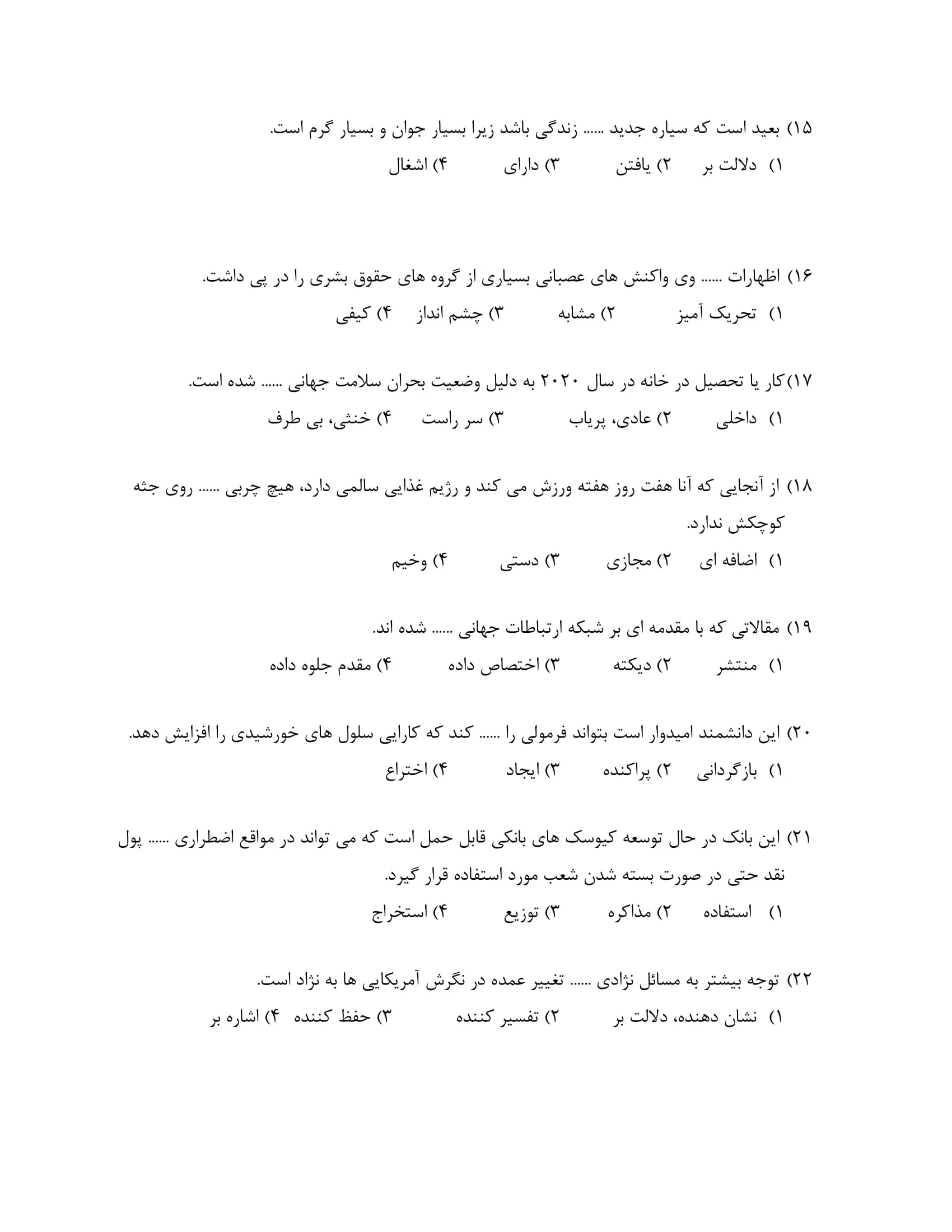 ترجمه آزمون 8 صفحه ای انگلیسی به فارسی
