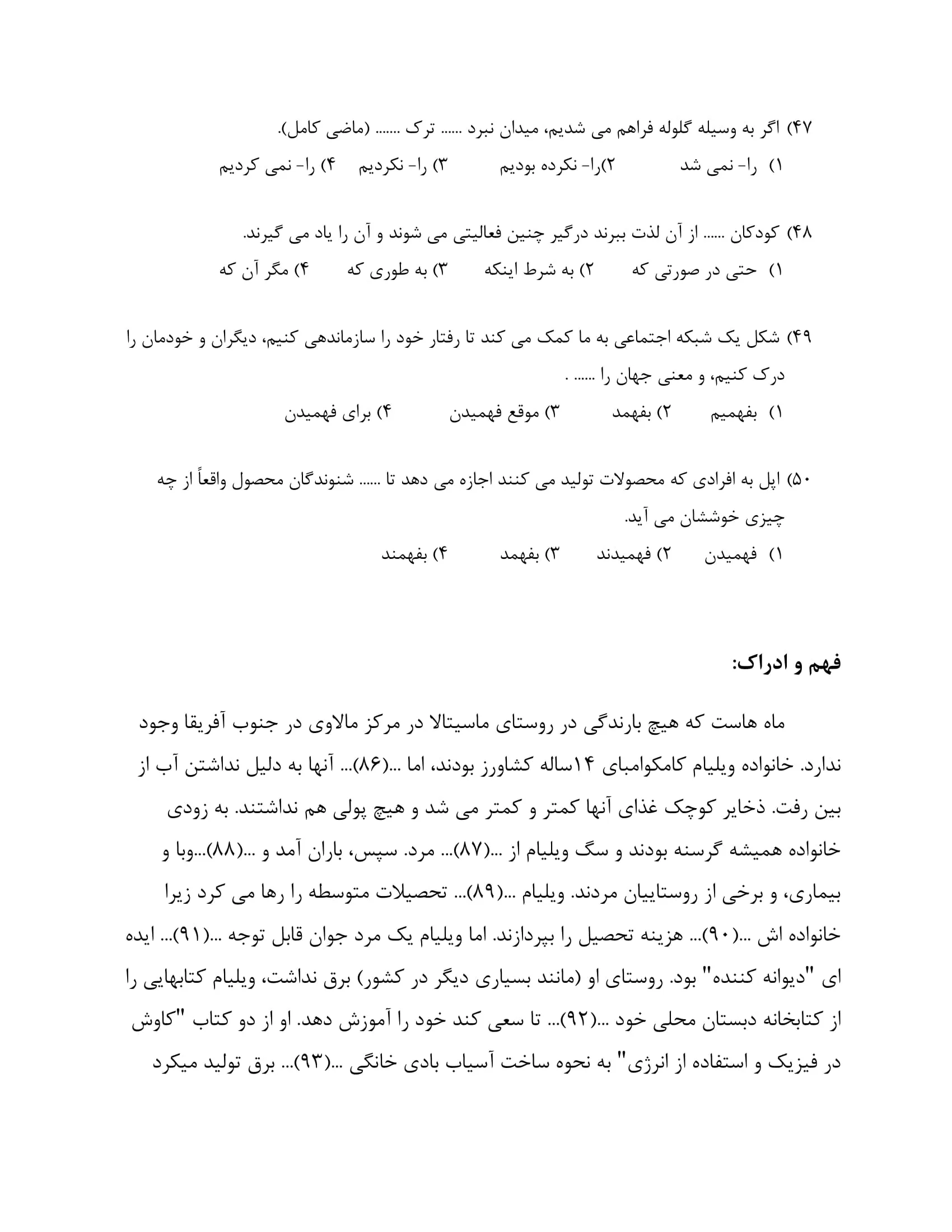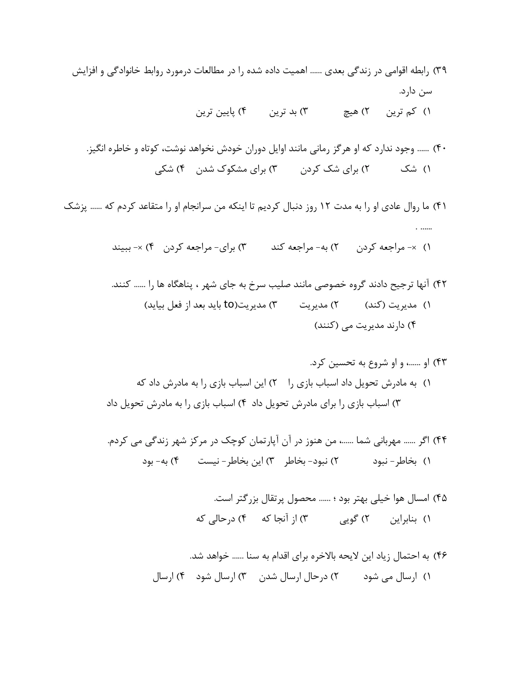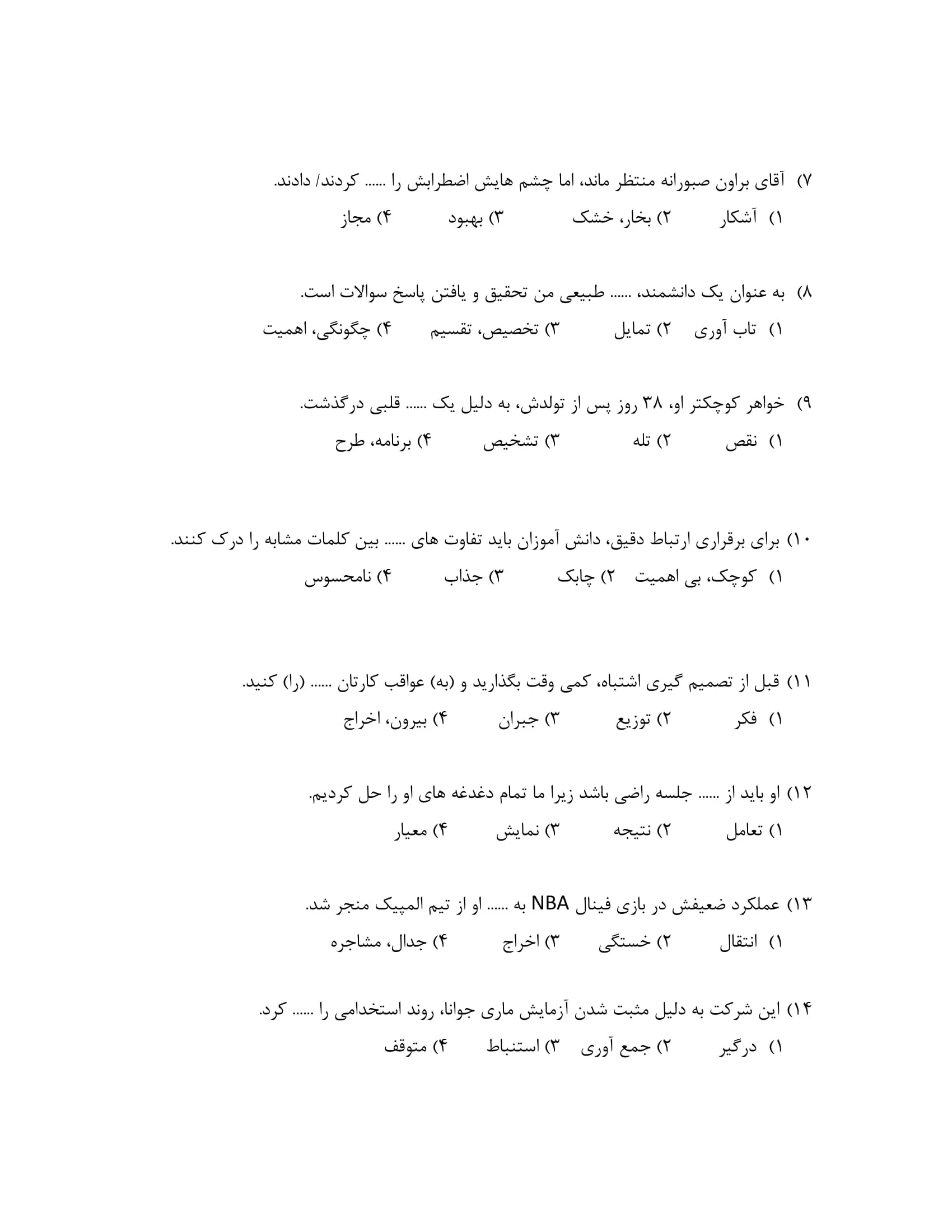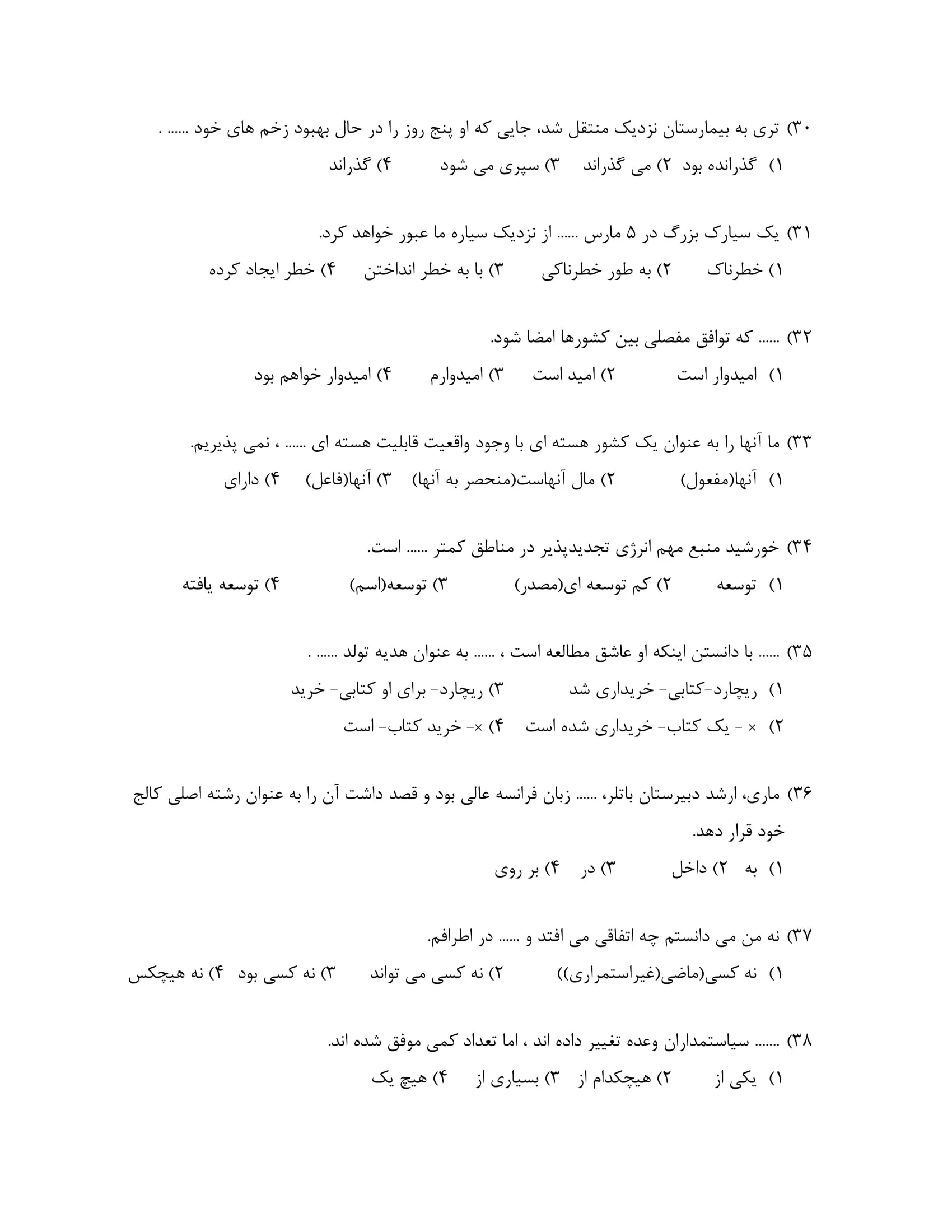 ترجمه آزمون 8 صفحه ای انگلیسی به فارسی