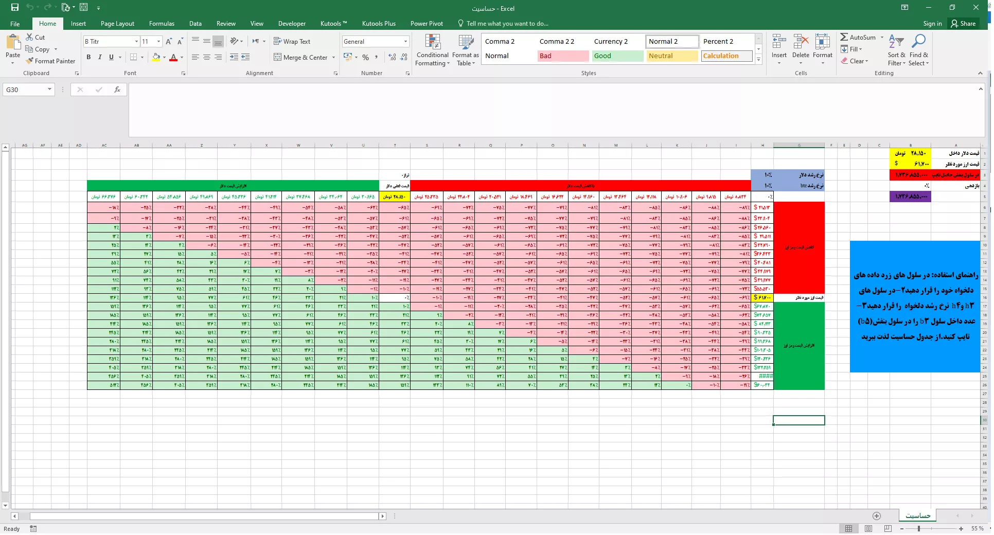 جدول حساسیت برای تحلیل مالی خرید سهام