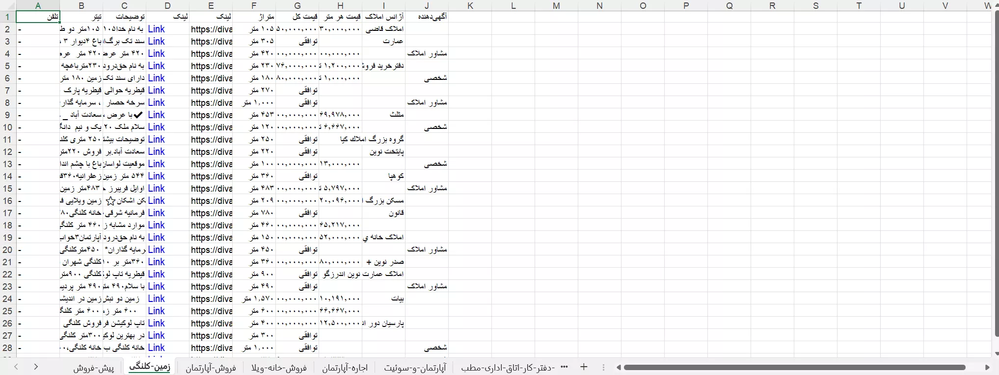 این پروژه مربوط به استخراج اطلاعات آگهی ها مختلف از سایت دیوار می باشد