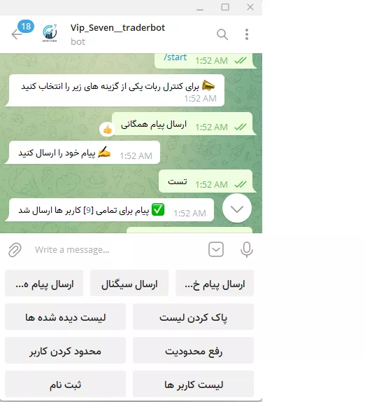 ربات مدیریت و ارسال سیگنال