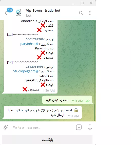قابلیت محدود سازی کاربرهای ربات