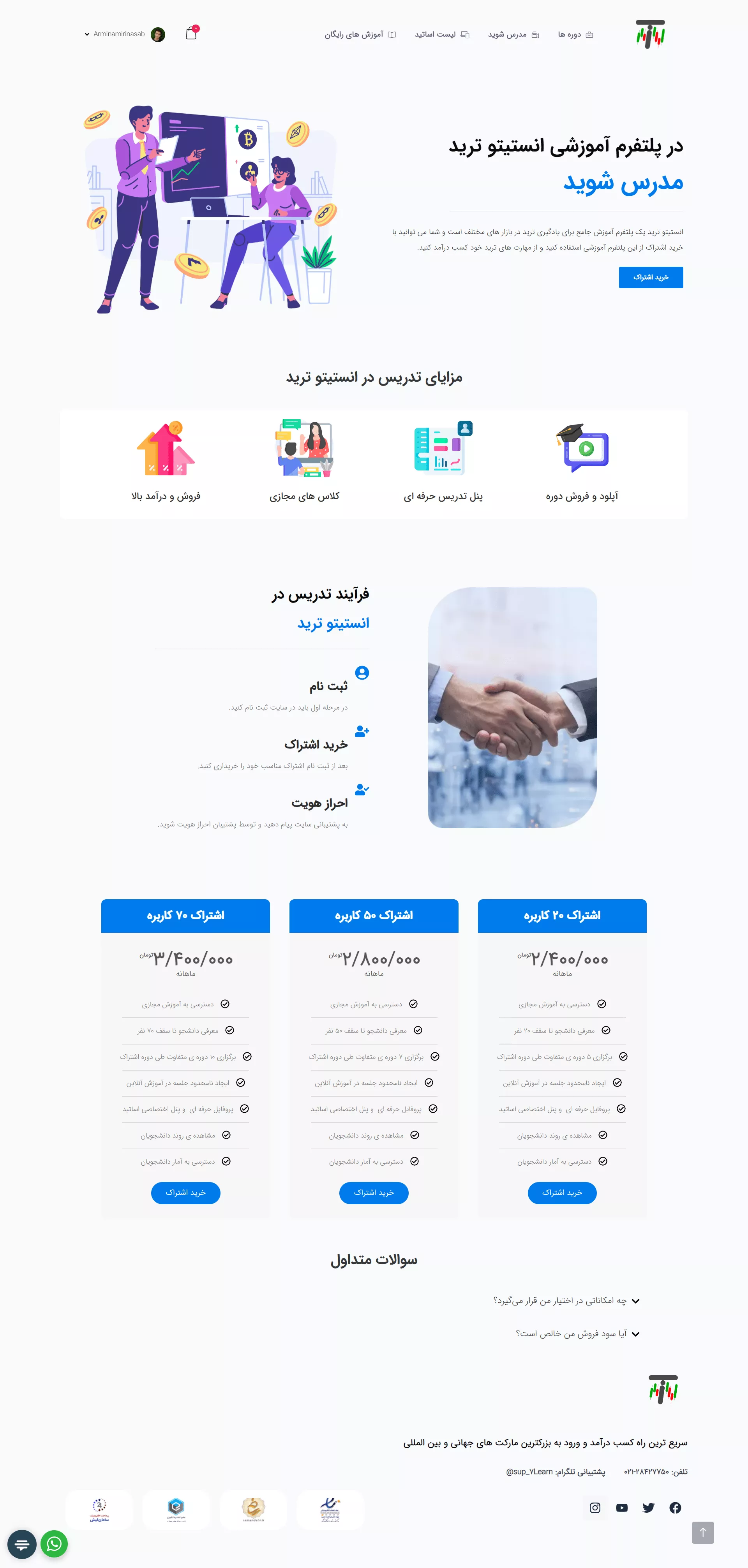 این لندینگ پیج برای پلتفرم آموزشی انستیتو ترید با استفاده از صفحه ساز المنتور با هدف معرفی پلتفرم و جذب مدرس طراحی شده است.