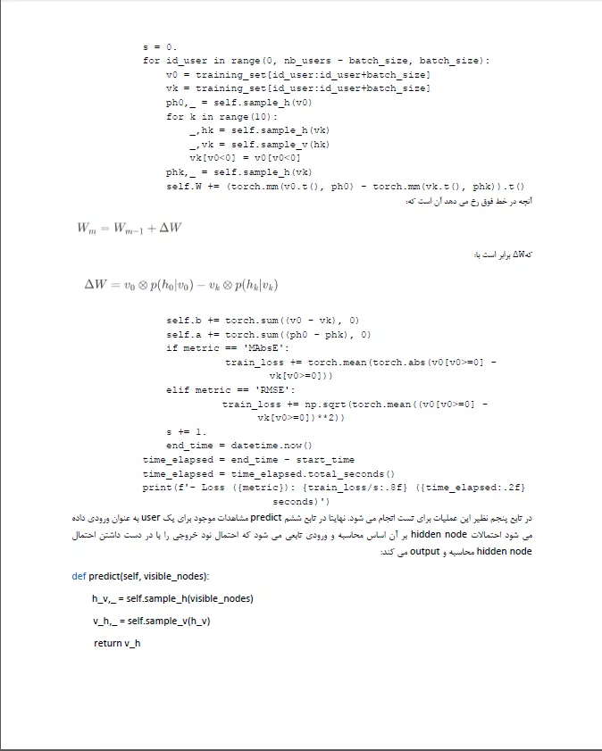 نمونه کار گزارش کد پایتون برای سیستم توصیه گر