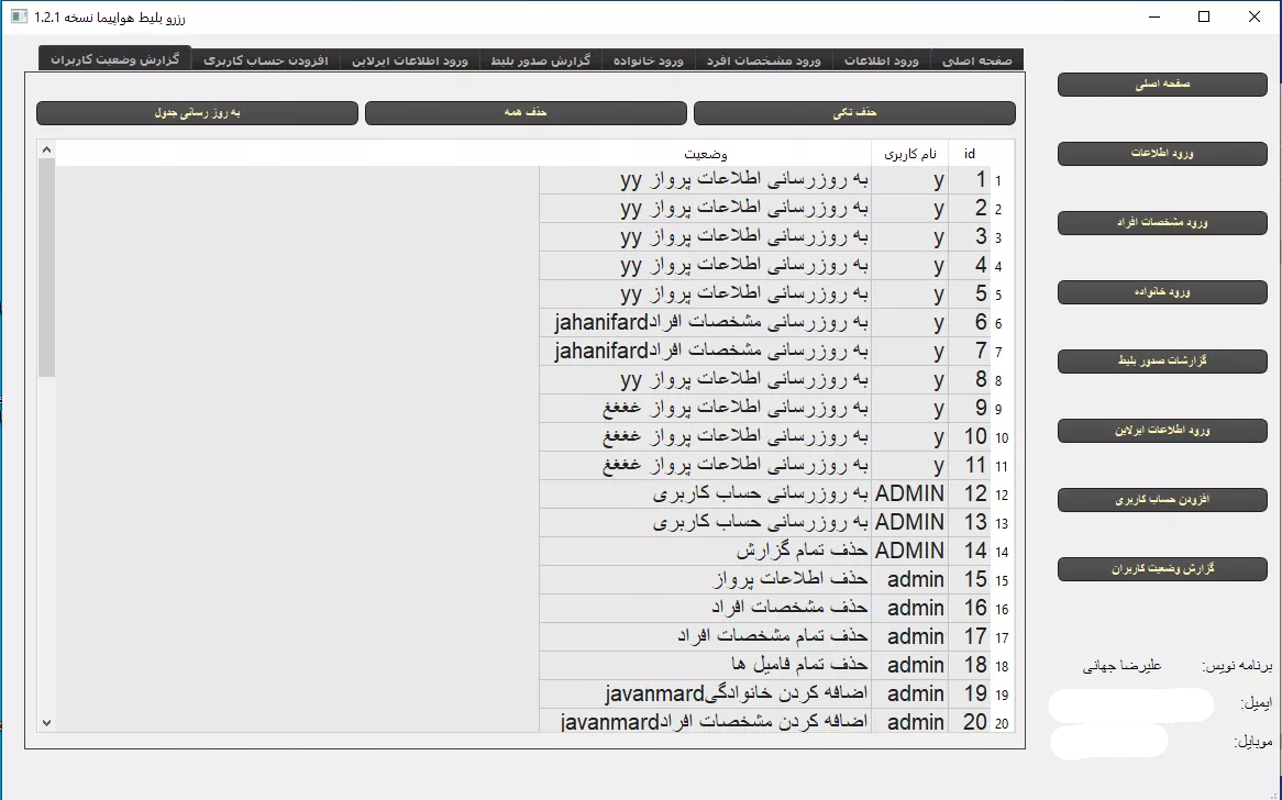 گزارش کار از عملکرد هر کاربر برای ادمین نرم افزار