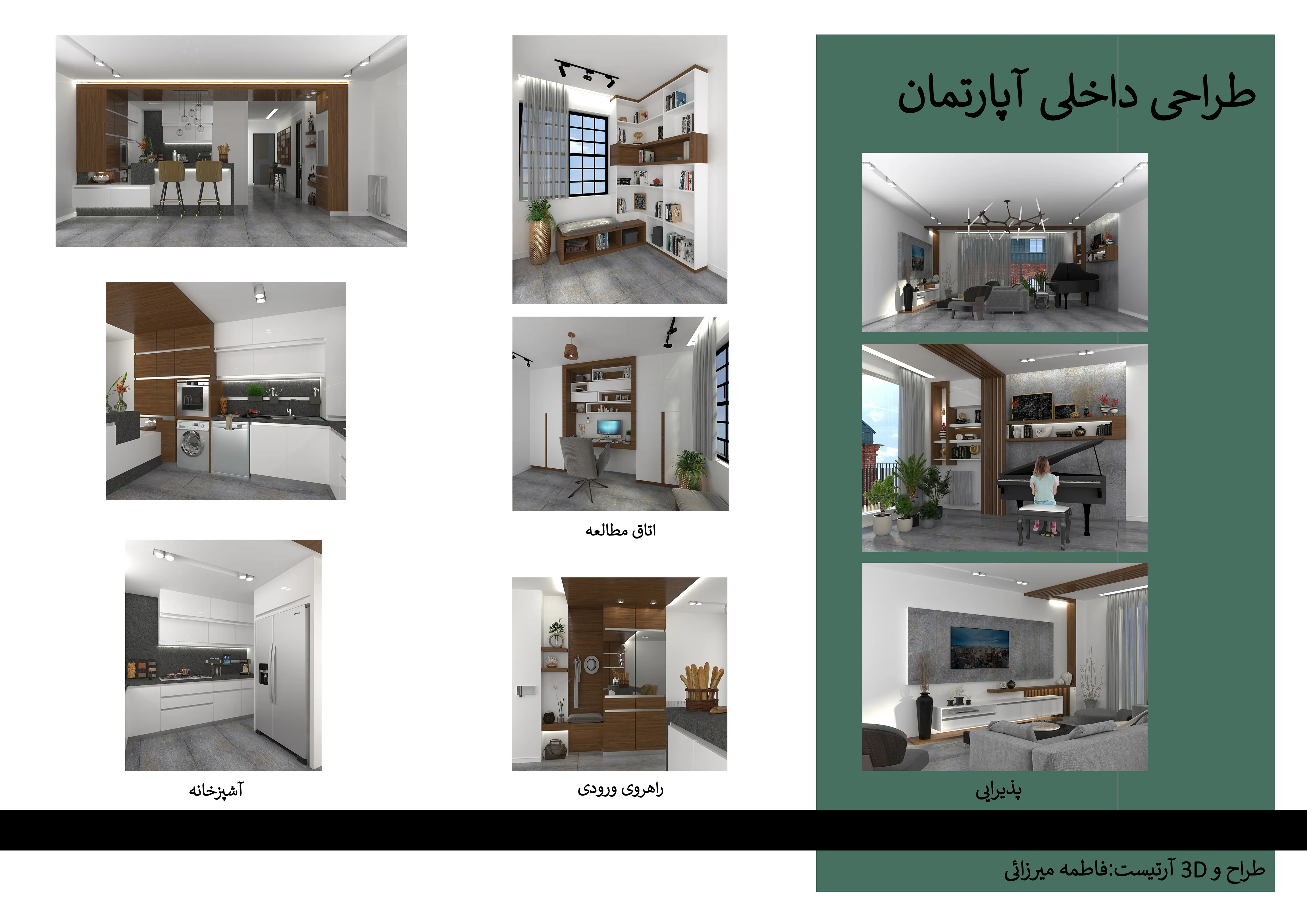 این آپارتمان با متراژ پایین موجود بود و من طراحی داخلی آن به همراه تریدی هایش را انجام دادم
