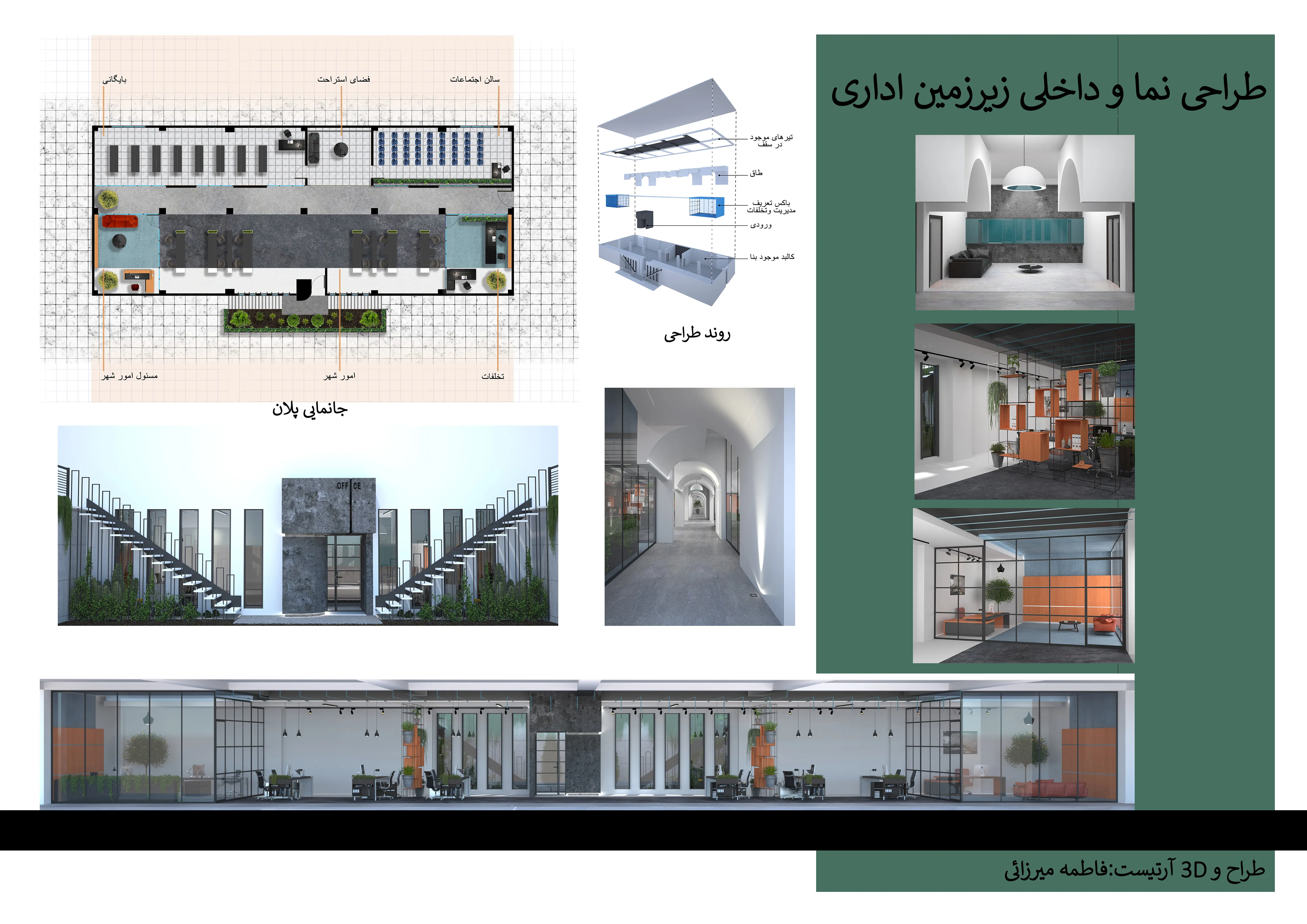 این طراحی در زیرزمین به ساختمان موجود اداریست که جهت پیوستن به ساختمان طراحی اش کردم.
