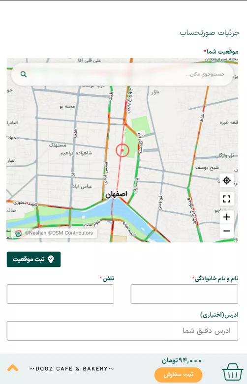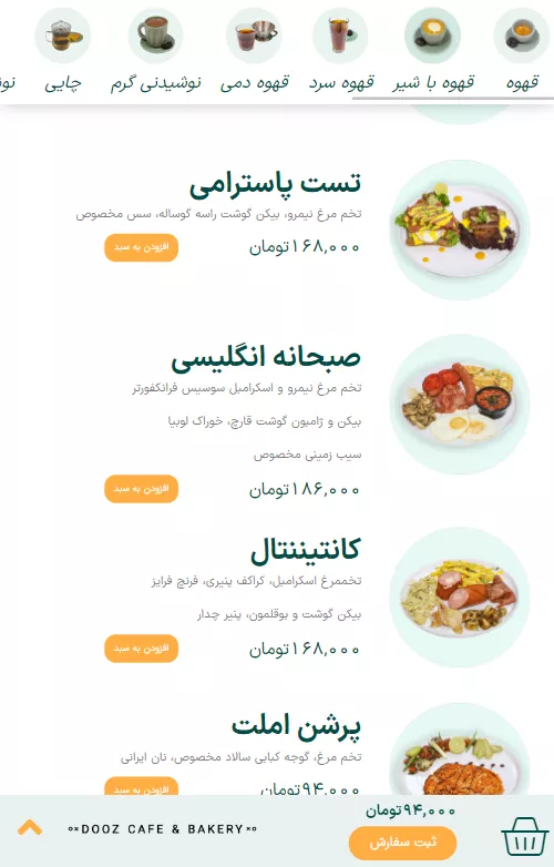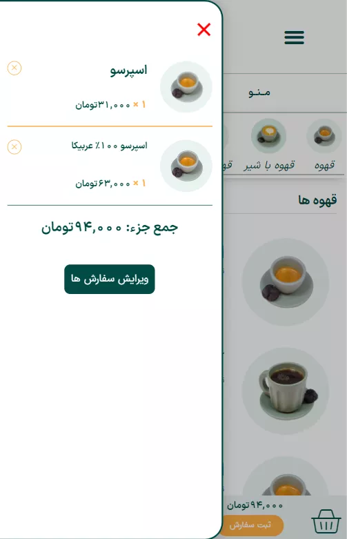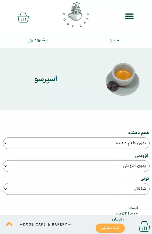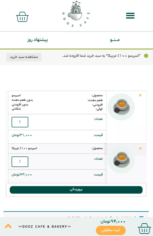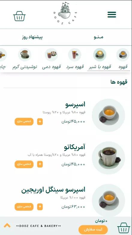 سامانه ثبت سفارش کافه دوز به همراه سامانه ارسال و چاپ فاکتور