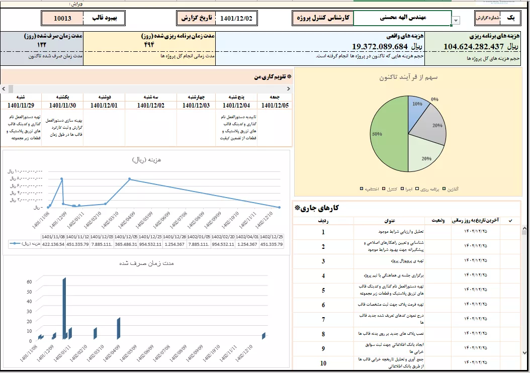 تقویم کاری نفرات تیم پروژه و دسترسی روزانه به اطلاعات پروژه