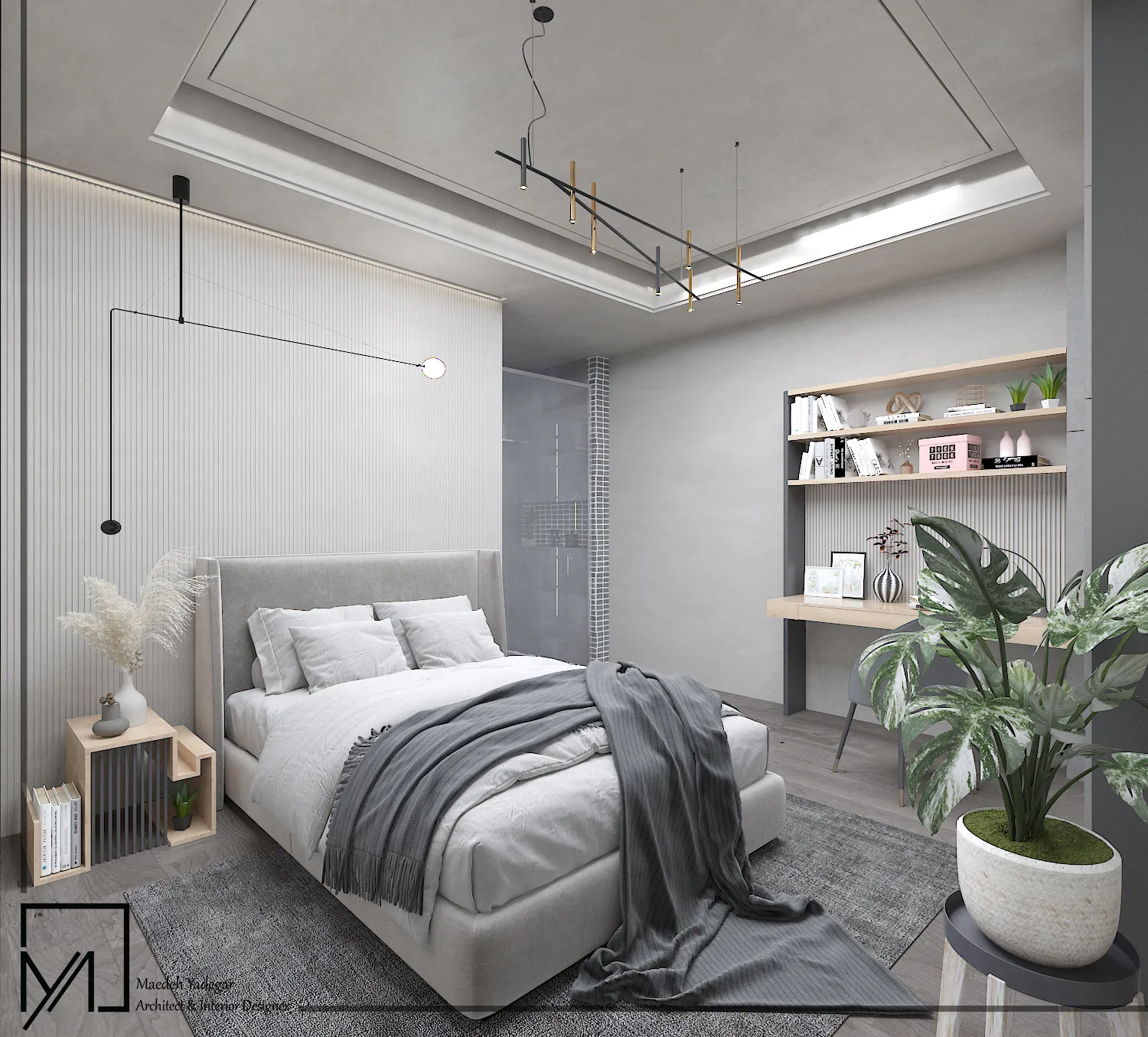 طراحی و رندرینگ اتاق خواب مستر همراه با کلوزت با نرم افزار مکس و رندرینگ با ویری