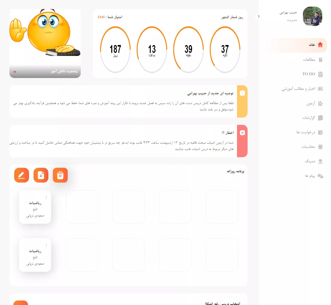 این داشبورد برای تسهیل برگزاری امتحانات و گزارش گیری بهتر و حذف پروسه اسناد به روش کاغذی طراحی و پیاده سازی شده است