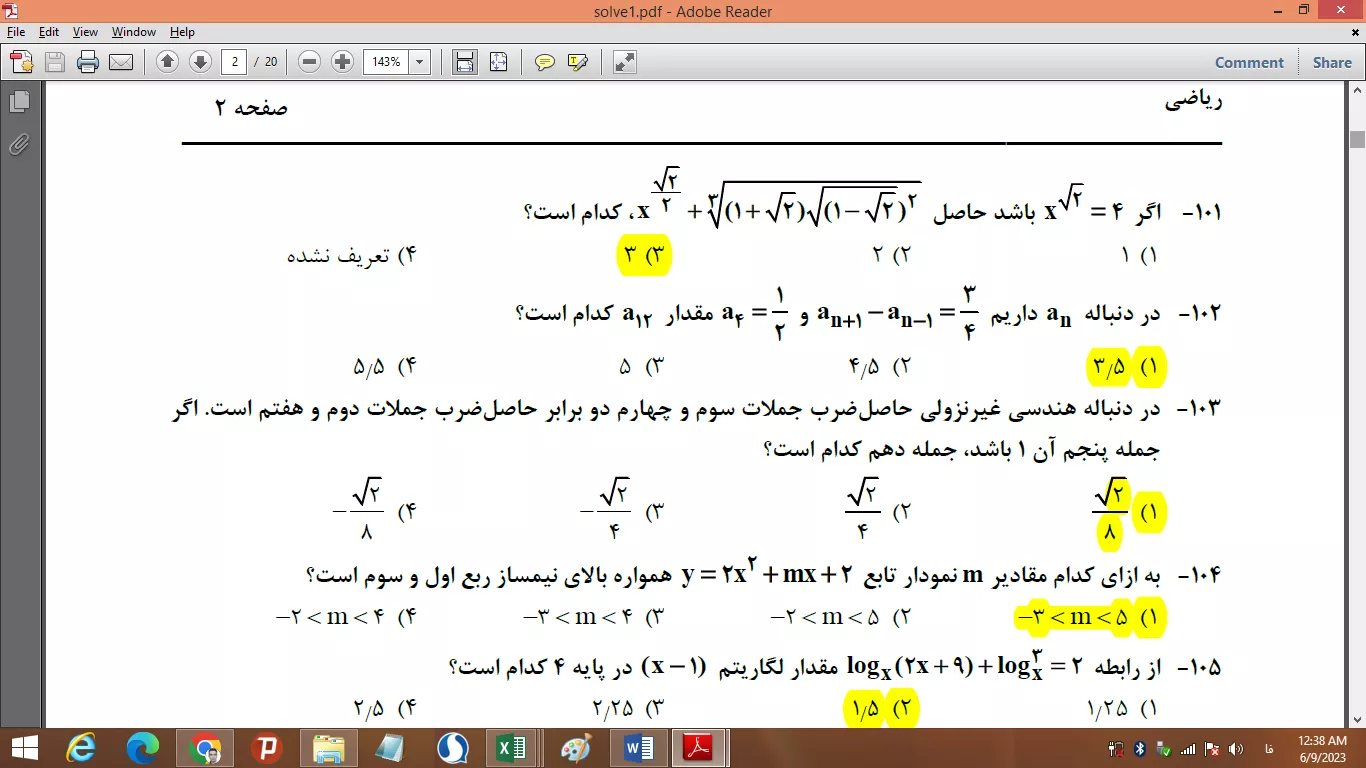 پاسخ به سوالات کنکور ریاضی و تجربی