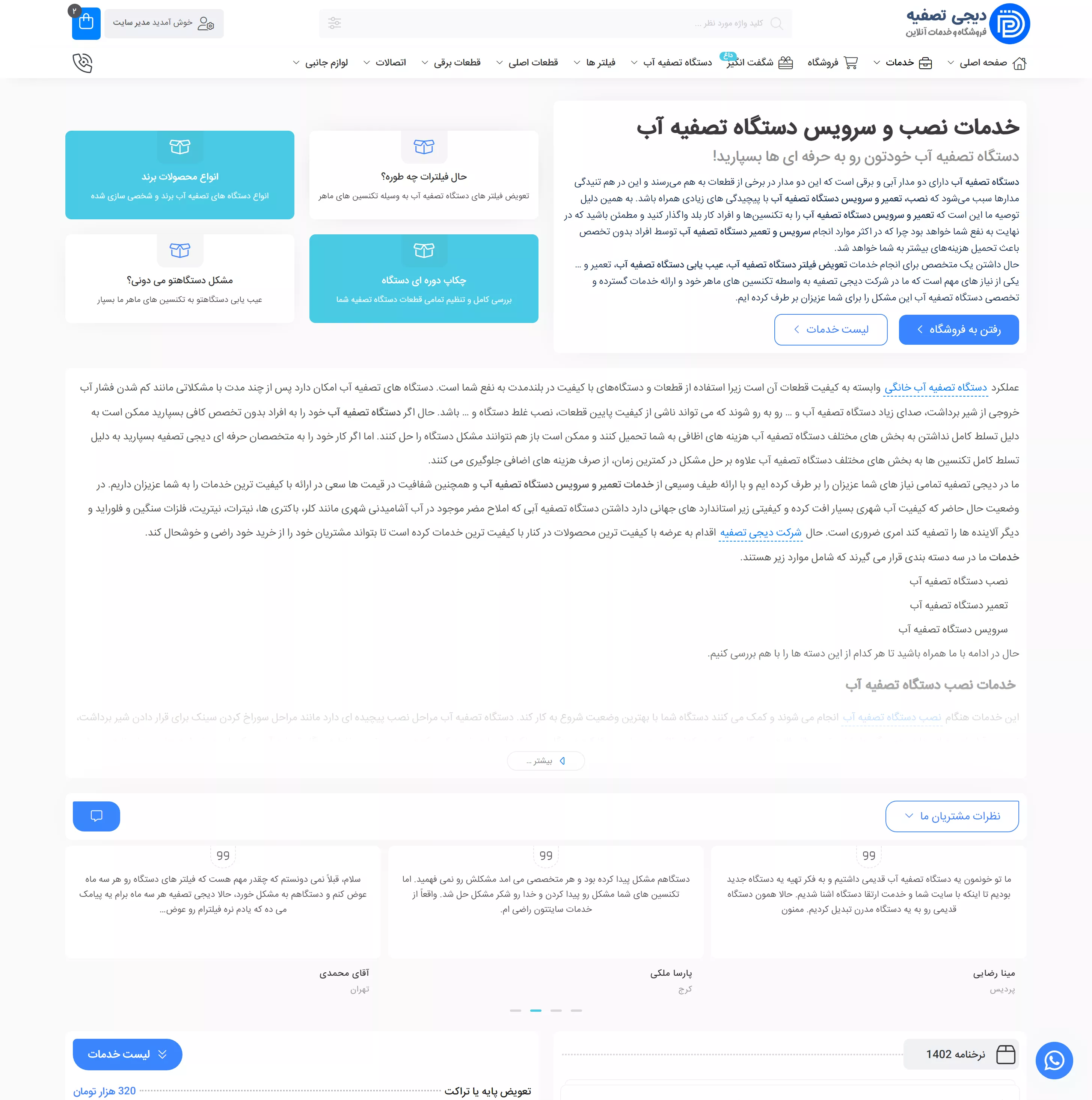 لندینگ طراحی شده برای خدمات فروشگاه دیجی تصفیه که علاوه بر رعایت نکات ظاهری سئو فرندلی بودن در آن نیز رعایت شده است.