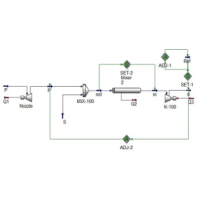 همانطور که میدانید در شبیه سازی نرم افزار هایسیس (رشته مهندسی شیمی) ماژول اجکتور تعریف نشده است. به همین علت به منظور برای تعریف ماژول اجکتور در یک سیستم فرآیندی میتوان از طرح بالا استفاده نمود.