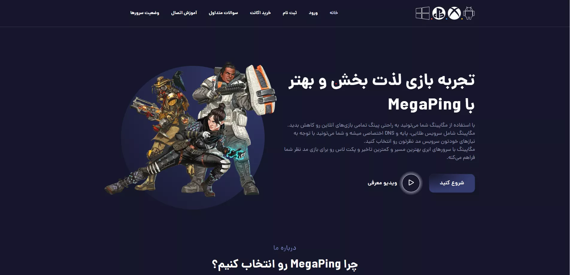 مگاپینگ وب سایتی است جهت رفع تحریم ها و کاهش پینگ در بازی های آنلاین که صفر تا صد آن توسط ویژن تیم انجام شده است