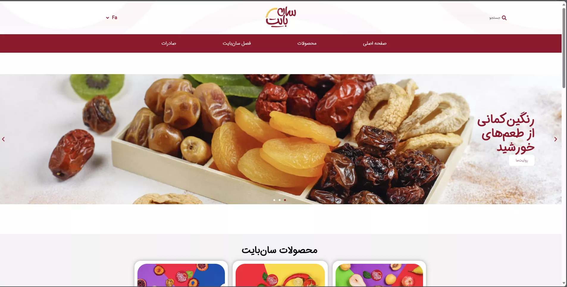 سان بایت یک سایت شرکتی 5 زبانه است که به زبان های فارسی انگلیسی عربی و روسی منتشر شده است در این سایت از افزونه المنتور پرو استفاده شده است.