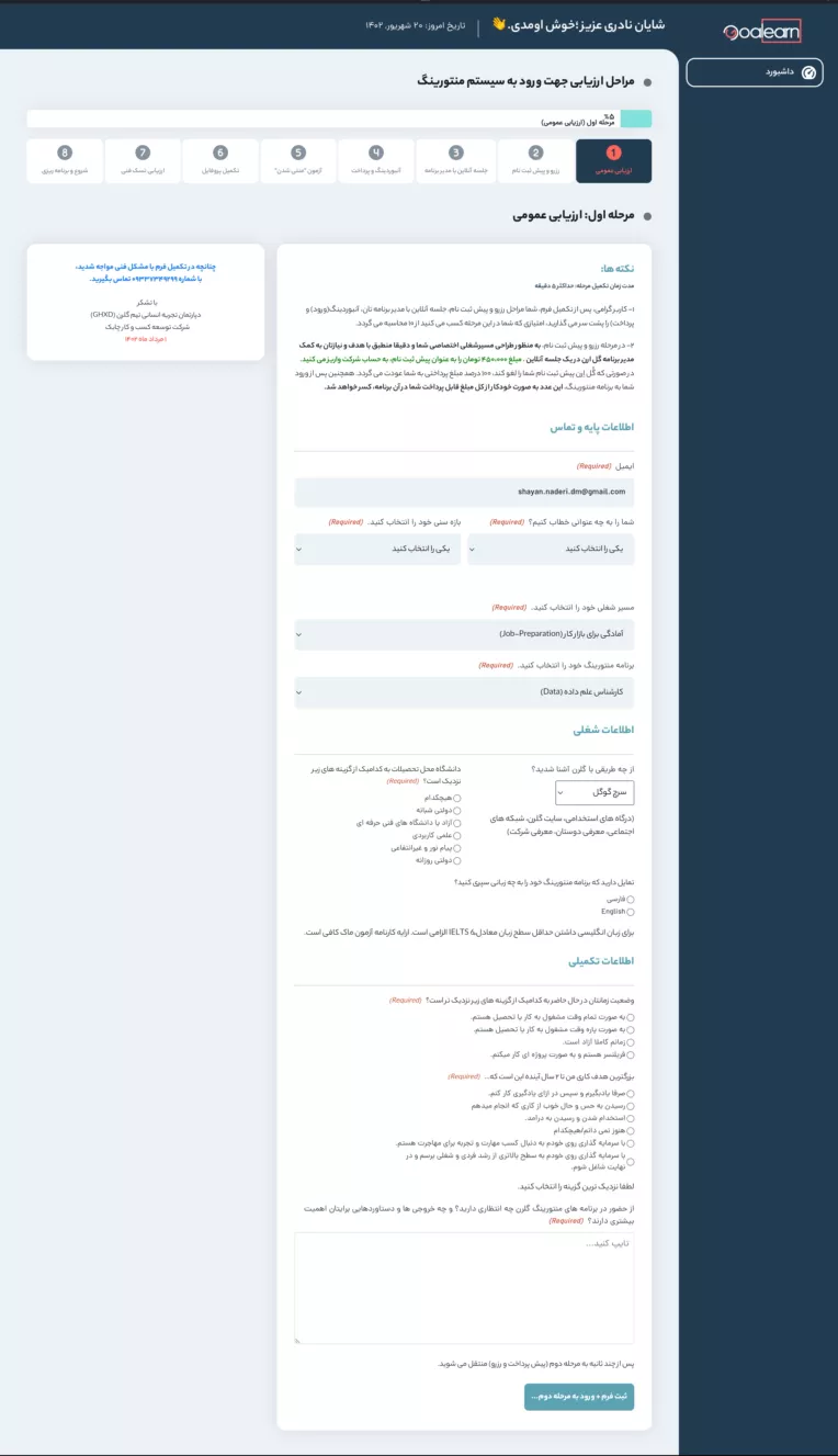 با توجه به توضیحات ارائه شده توسط کارفرما، سایت به وسیله المنتور و جت انجین طراحی و پیادهسازی شده است. این سایت از افزونه Gravity Forms برای فرآیند ثبت نام استفاده میکند. یک داشبورد اختصاصی با ماژول پروفایل جت انجین ساخته شده