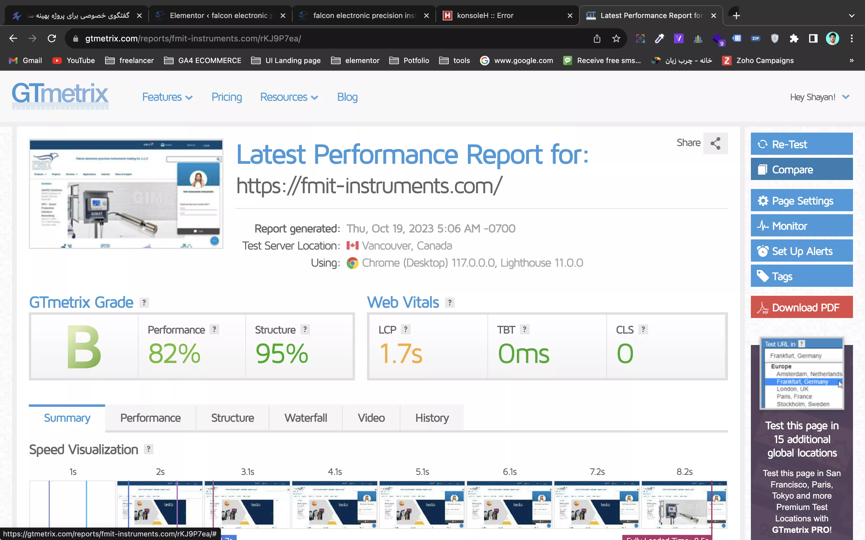 صفحه اصلی این وبسایت توجه به مفاهیم تکنیکال سایت مثل Dom Size، lcp، fcp و سایر فاکتورهای اساسی بهینه سازی سرعت ارائه شده است و سرعت آن به زیر ۲ ثانیه رسیده است.
