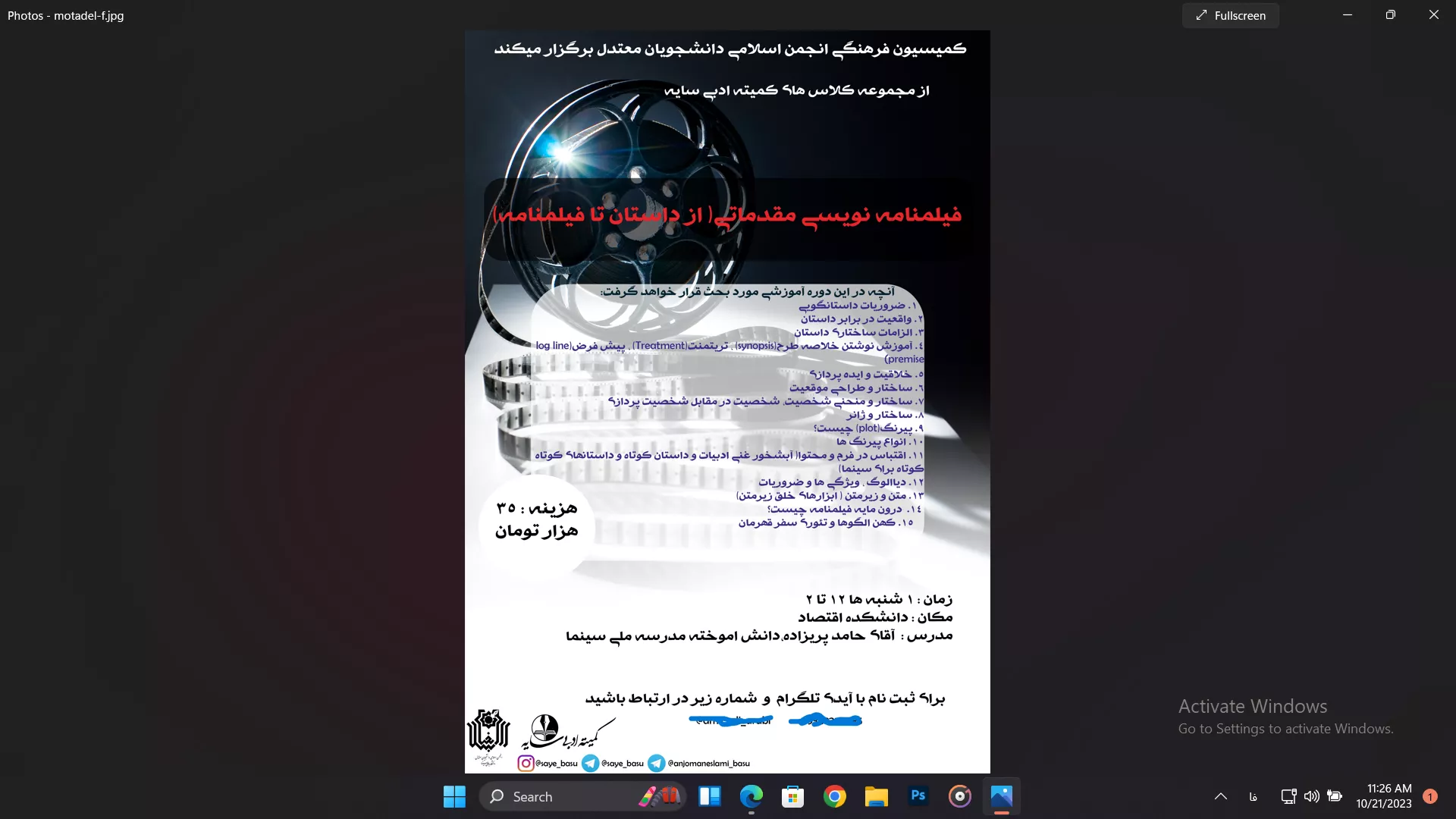 پوستر تبلیغاتی ثبت نام کلاس فیلمنامه نویسی