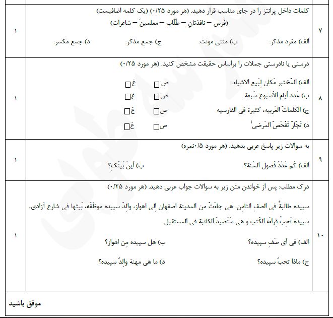 تایپ سوالات چهار گزینه ای و عربی