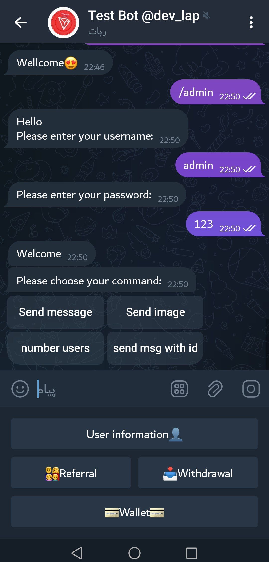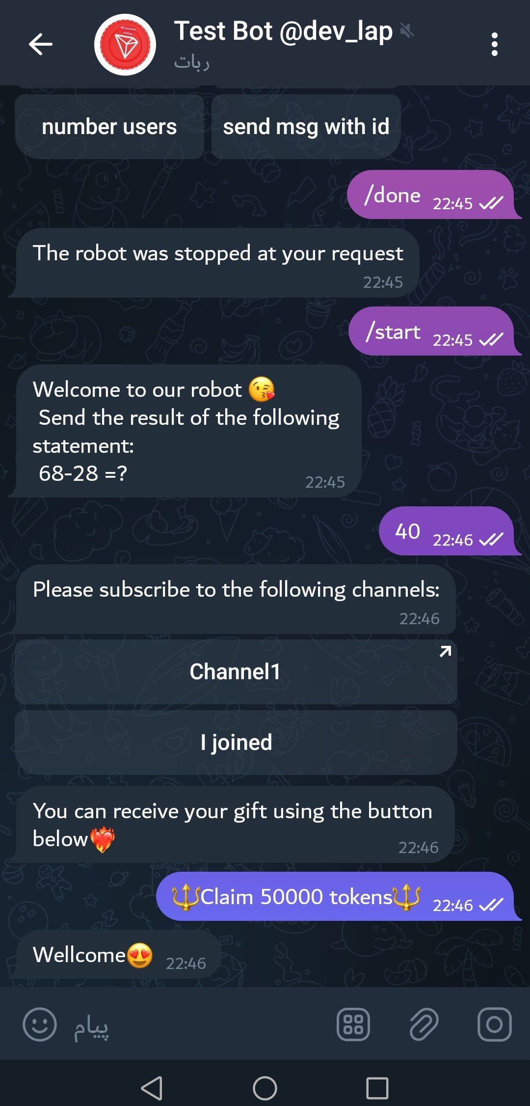 عکس نمونه ربات که توسط کتابخانه python-telegram-bot درست شده است .