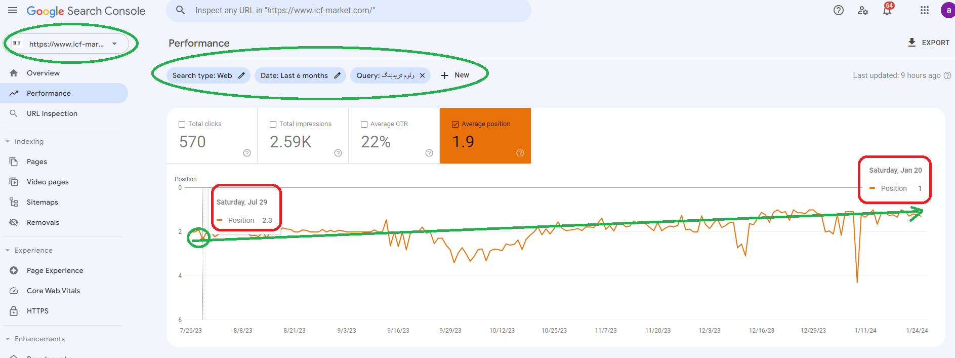 سئو و بهینه سازی وب سایت اکادمی icf مارکت برای مهندس سعید شعبانی و بالا اوردن کلمه کلیدی (ولوم تریدینگ) در صفحه اول گوگل و قرار گرفتن این کلمه کلیدی در خط 1