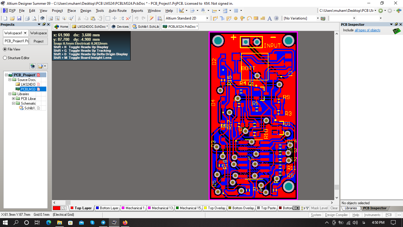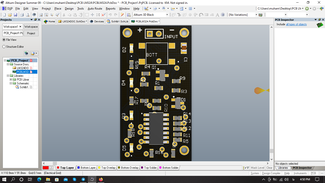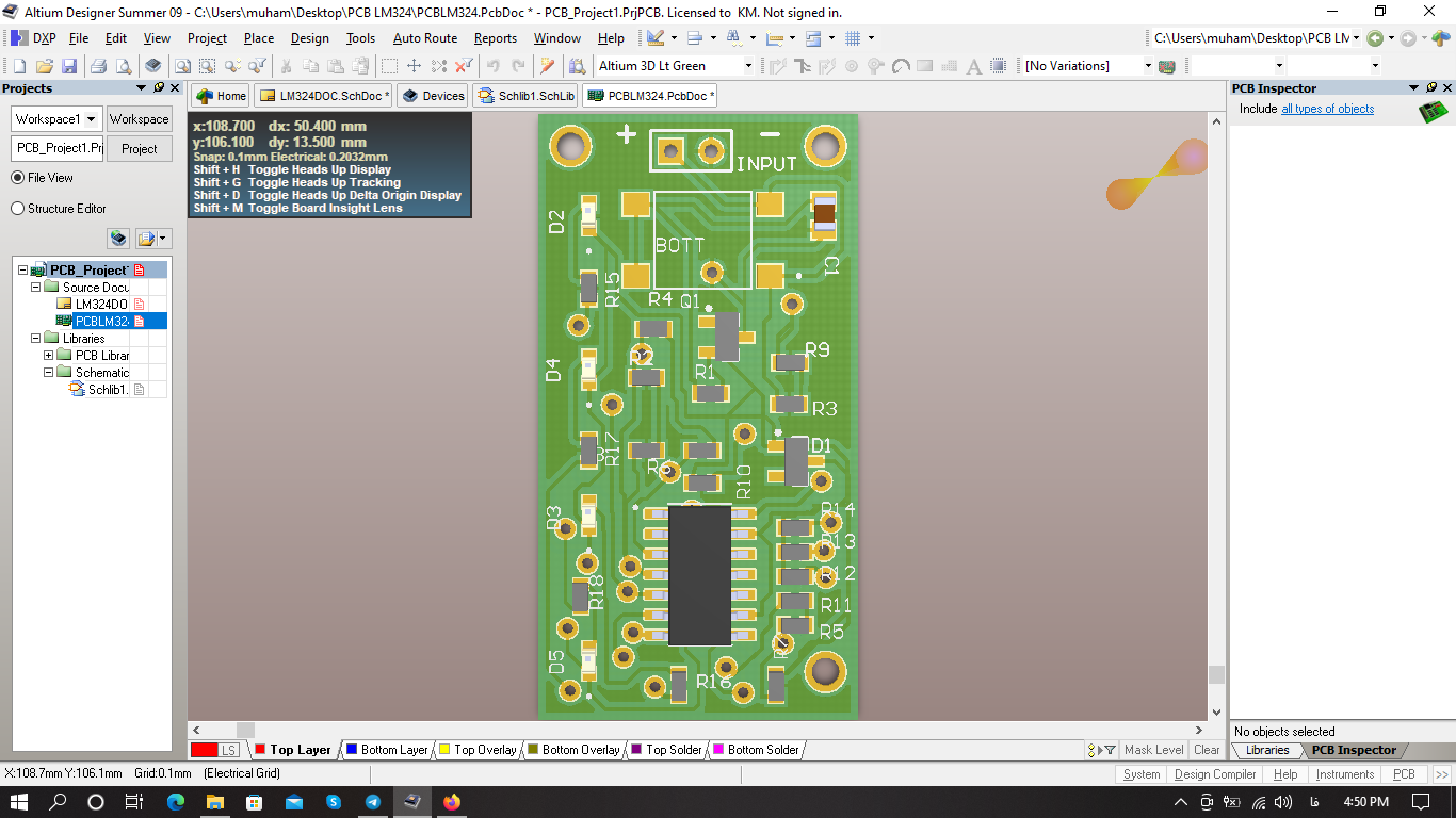 این برد که توسط نرم افزار آلتیوم طراحی شده است یک نمایشگر میزان باتری با چهار LED و با استفاده از ای سی LM324 است.
