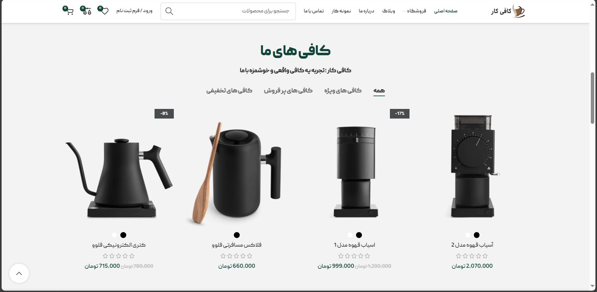 طراحی وب سایت کافی کار ( فروش قهوه )