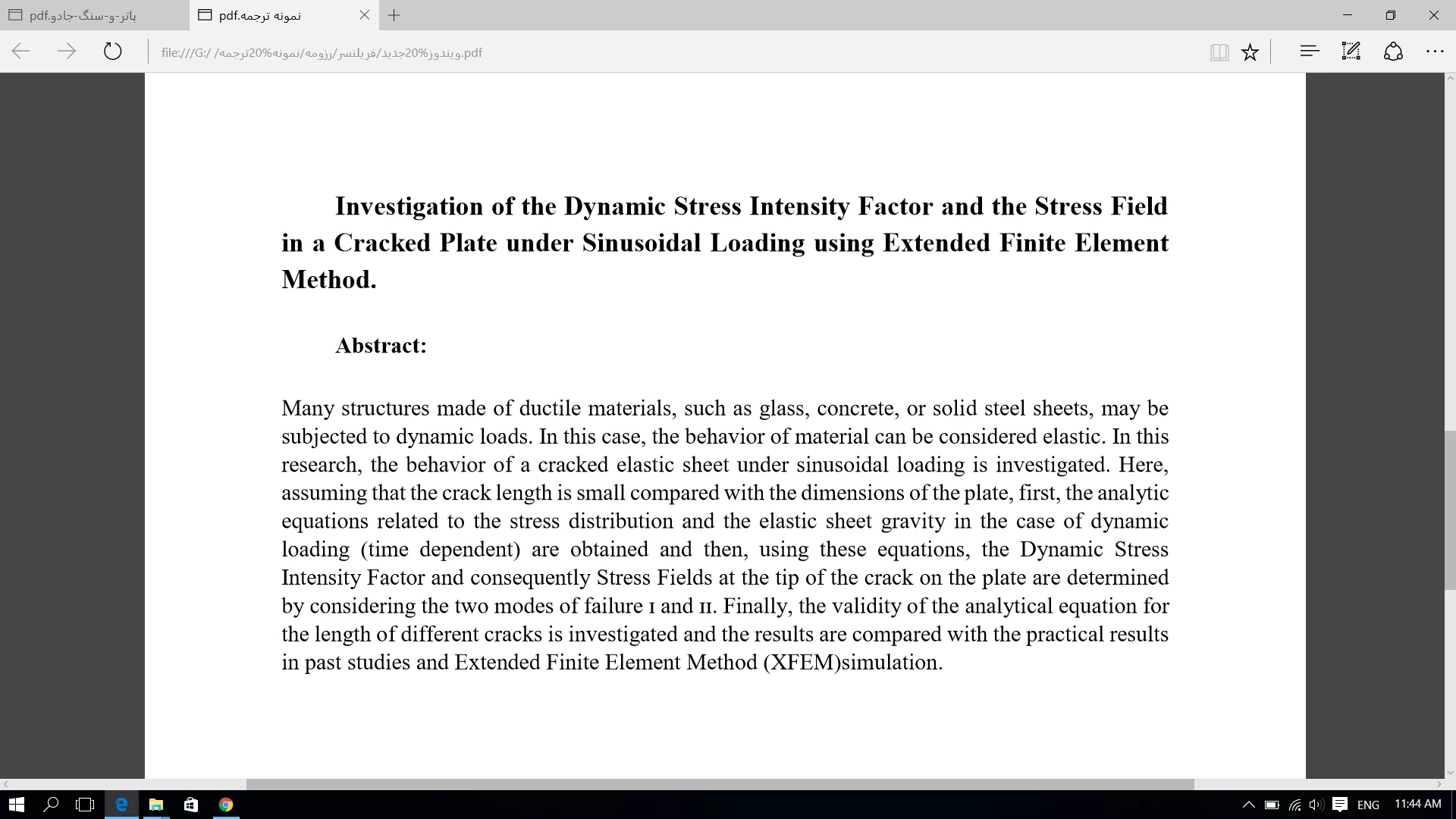 ترجمه بخشی از یک پایان نامه رشته مکانیک طراحی کاربردی