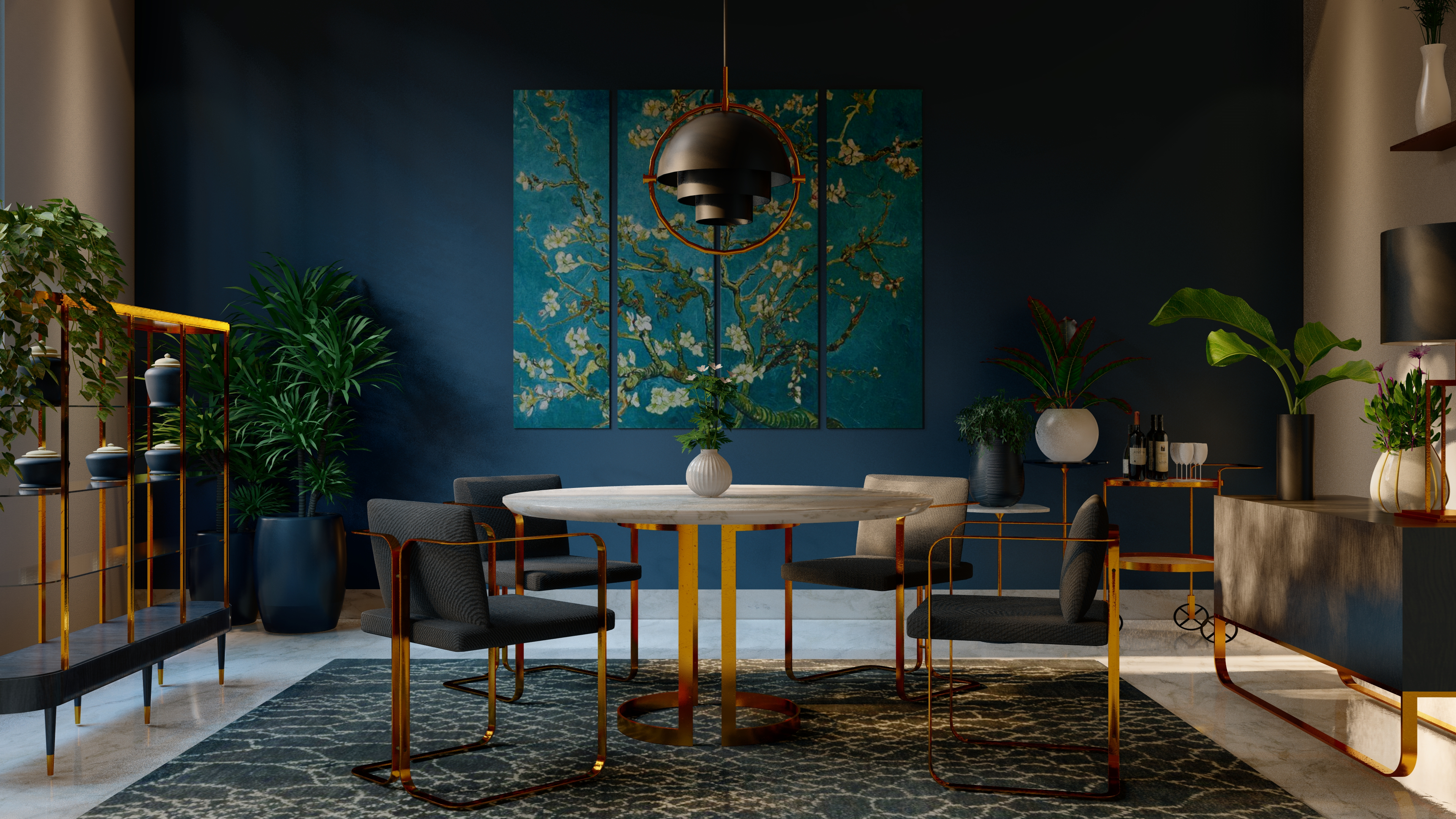 سه بعدی و رندر ناهارخوری - معماری داخلی