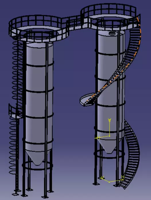 طراحی مخزن و پله گرد و ساخت و نسب ان در کارخانه