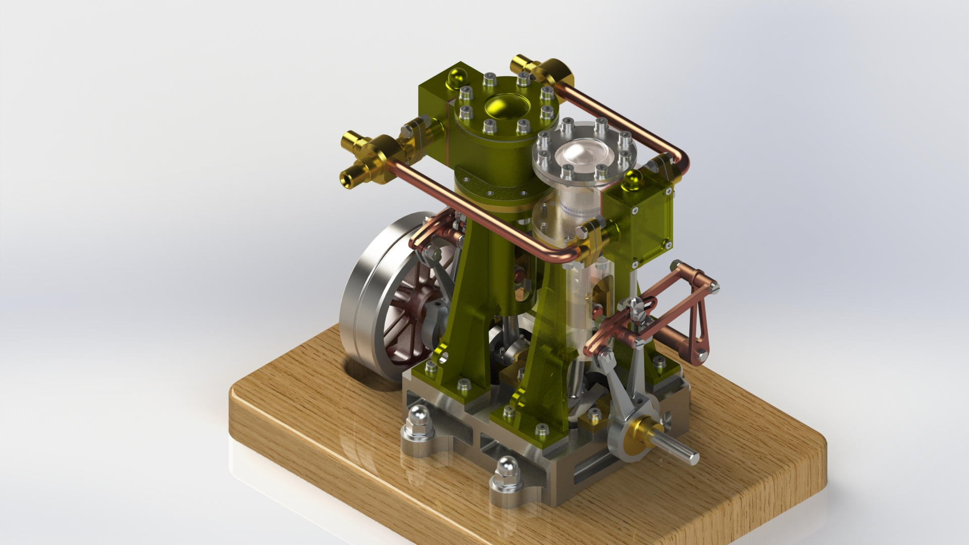 این موتور در نرم افزار solidworks ، به کمک نقشه هر یک از قطعات(part) آن طراحی شده است. 51 part به صورت جدا جدا طراحی شده و در نهایت در محیط assembly روی هم سوار شده تا این موتور در نهایت با 300 قطعه ایجاد شده است. تصویر مربوط به رندر گرافیکی موتور مورد نظر است.