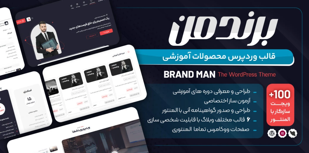 قالب ایرانی برندمن یک قالب المنتوری با 103 ویجت کاربردی و حرفه ای و امکان شخصی سازی بالا است که می توانید به راحتی تمامی صفحات آرشیو و سینگل و همچنین تمامی صفحات ووکامرس و پروفایل کاربری را با استفاده از المنتور طراحی و سفارشی سازی کنید. قالب برندمن بدون نیاز به دانش برنامه نویسی و فقط با درگ و دراپ کردن ویجت های المنتوری به راحتی شخصی سازی می شود و تمامی ویجت های مورد نیاز جهت ایجاد صفحات آرشیو و سینگل را دارد تا کاربران بتوانند به راحتی طرح مورد نظر خود را پیاده سازی کنند.