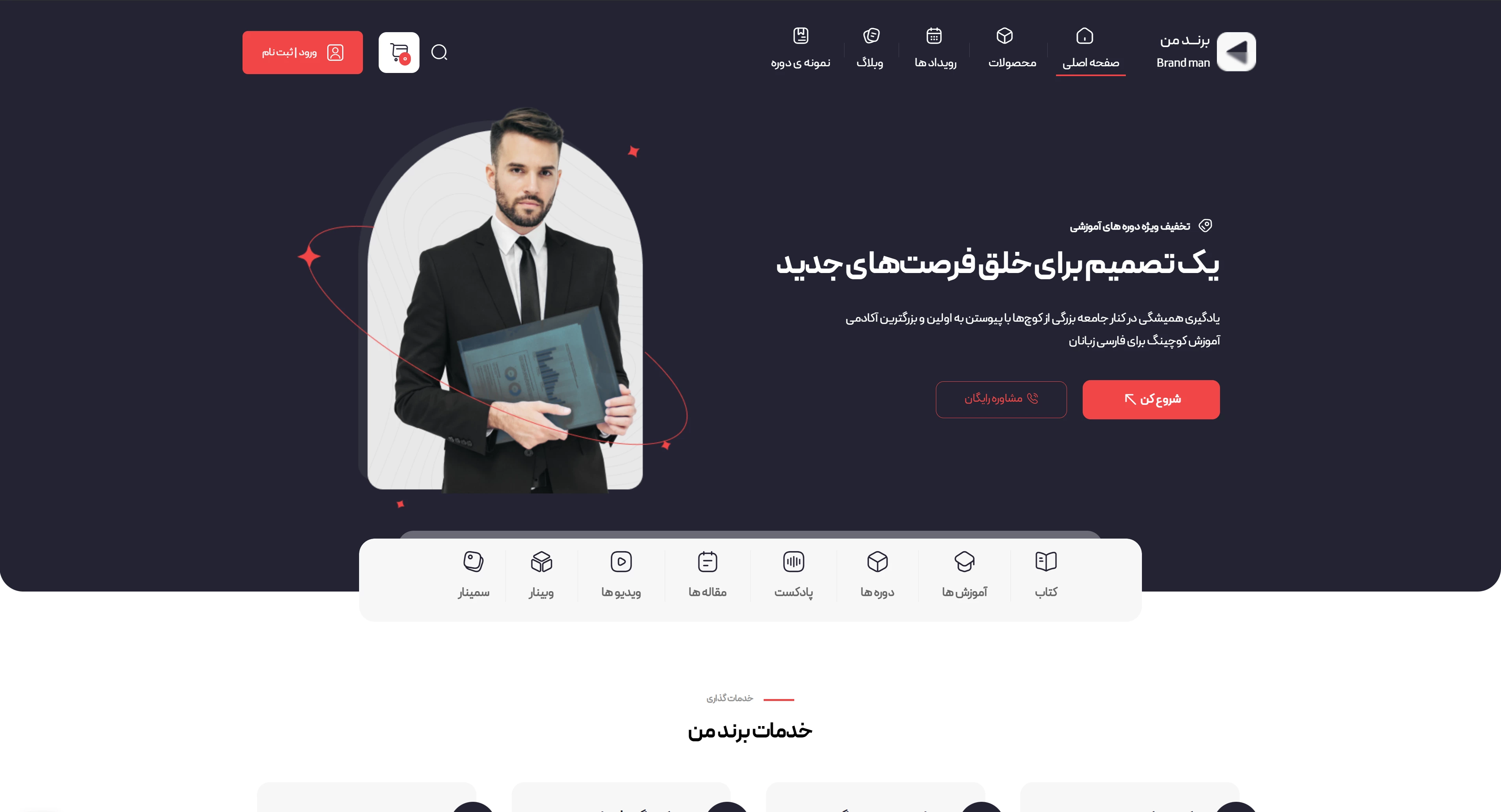قالب ایرانی برند من منتشر شده در راست چین یک قالب وردپرس حرفه ای و کامل بر طبق سلیقه کاربران ایرانی، برای راه اندازی هر نوع وب سایت آموزشی و فروش دوره و ایجاد آزمون است.