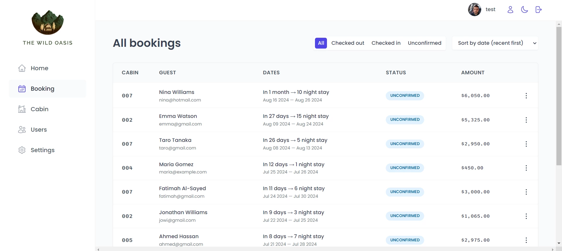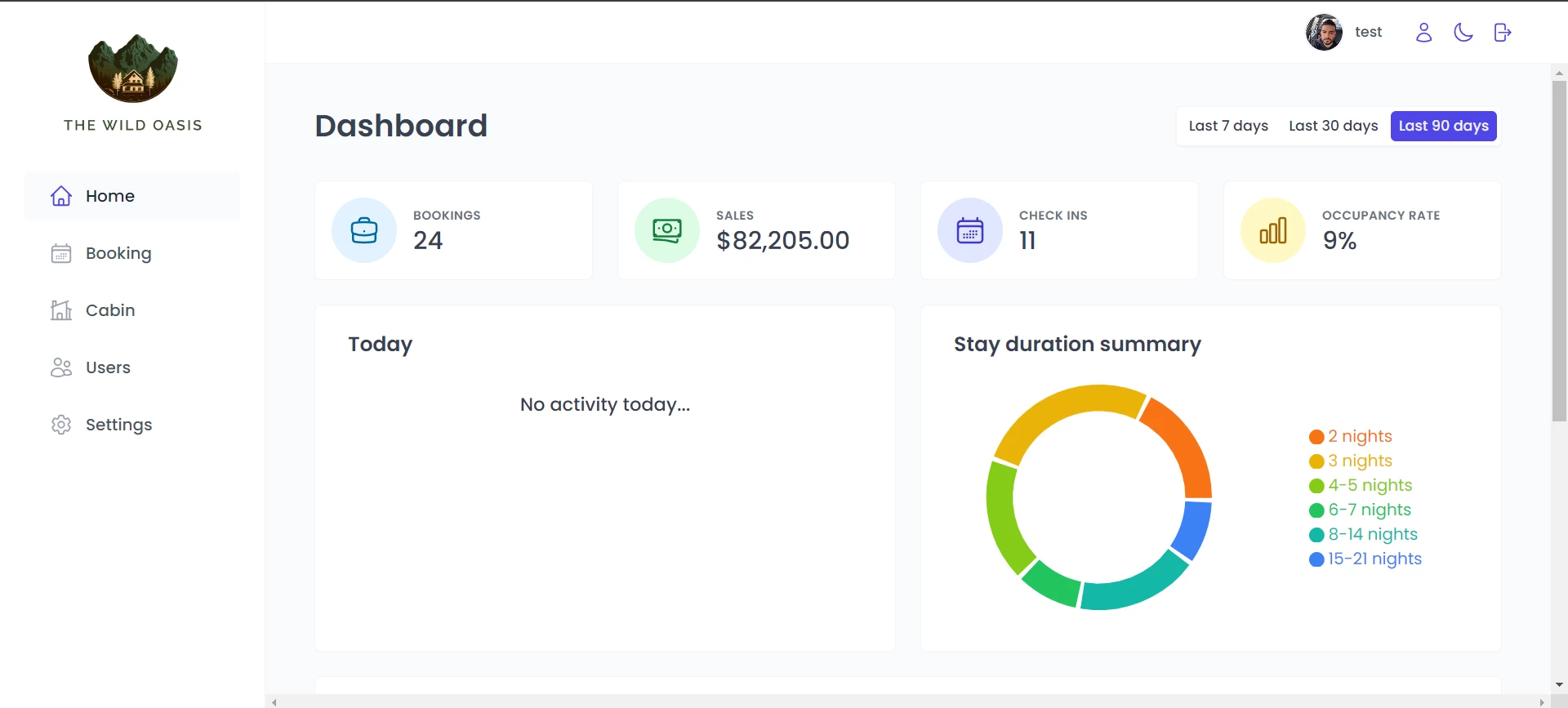 ویژگی ها: در دشبورد درآمد محاسبه شده به همراه کاری که باید در اون روز انجام بشه و به همراه دو نمودار، یکی برای تعداد شب هایی که مهمانان مانده اند و یک نمودار برای محاسبه درآمد برای هرروز،