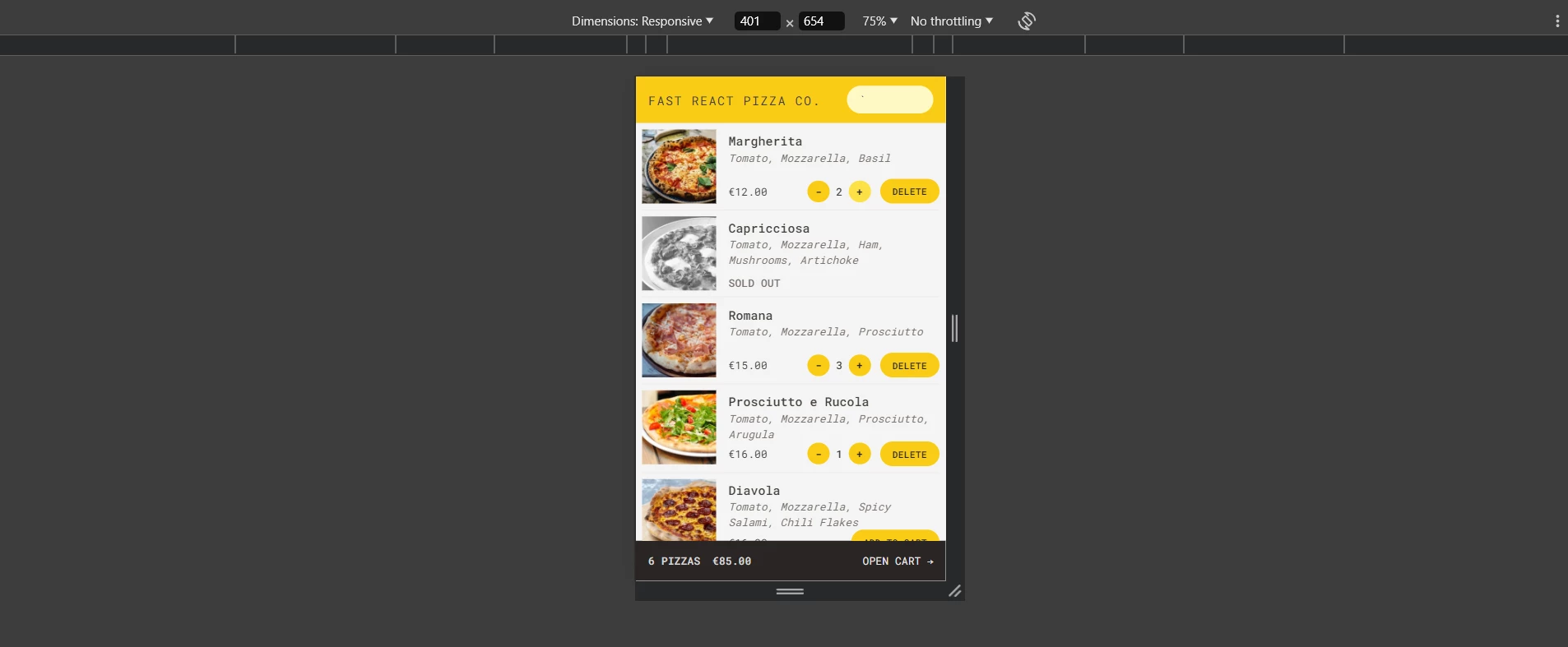 سایت برای سفارش پیتزا که با ریکت و تیلویند که به صورت رسپانسیو ساخته شده است.