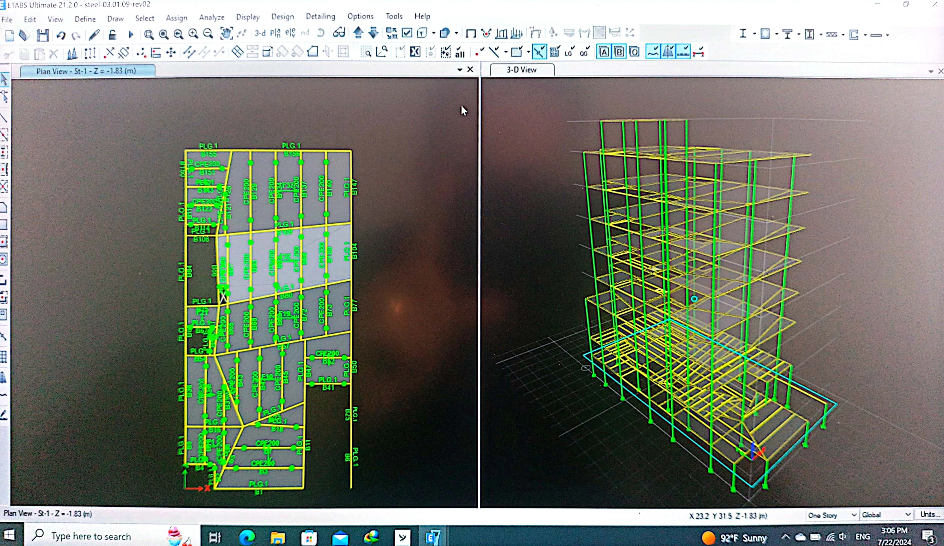 طراحی سازه فلزی ۷ طبقه در شهر تهران با سقف عرشه فولادی