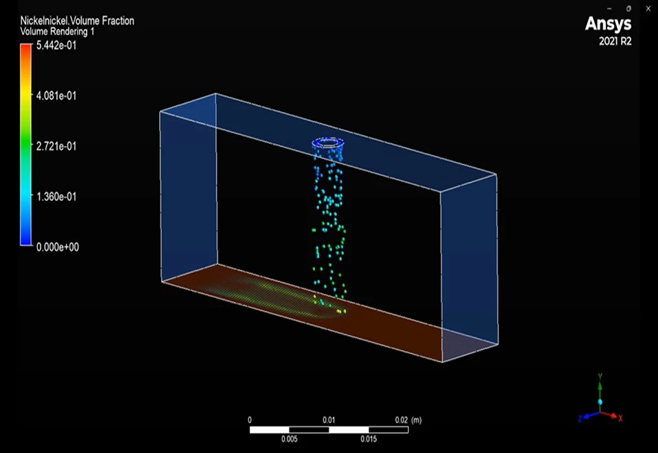 در این مسئله از مدل های اویلرین و لاگرانژین به همراه مدل ذرات گسسته برای شبیه سازی پدیده جوش نیکل استفاده شده است. همچنین صفحه زیرین با استفاده مدل دیواره متحرک به صورت همزمان در حال حرکت است.