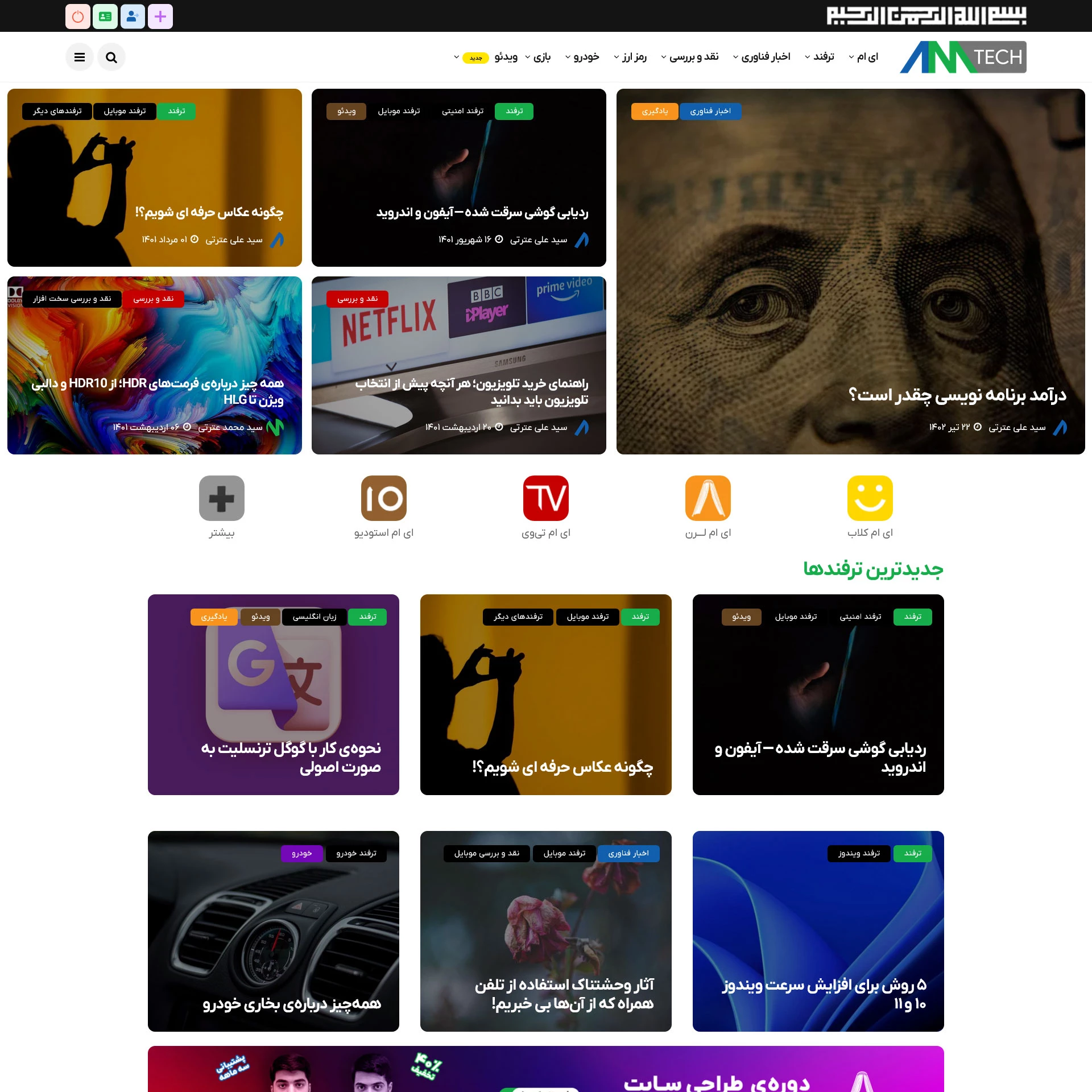 طراحی، توسعه و ساخت سایت ای ام تک؛ مرجع ترفند، اخبار و تاریخ فناوری. دارای صفحات گوناگون و قابلیتهایی نظیر ثبتنام، ورود، کامنت گذاری و...