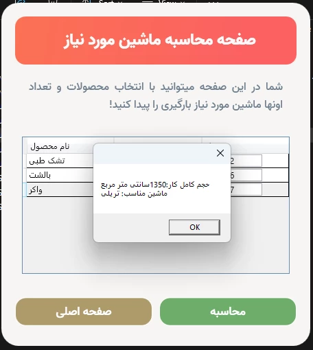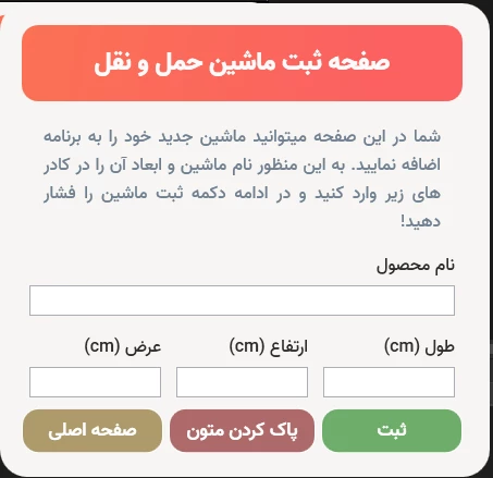💠 کار اصلی این نرمافزار انتخاب ماشین مناسب برای بارگیری محصولات انتخاب شده توسط کاربر میباشد!
