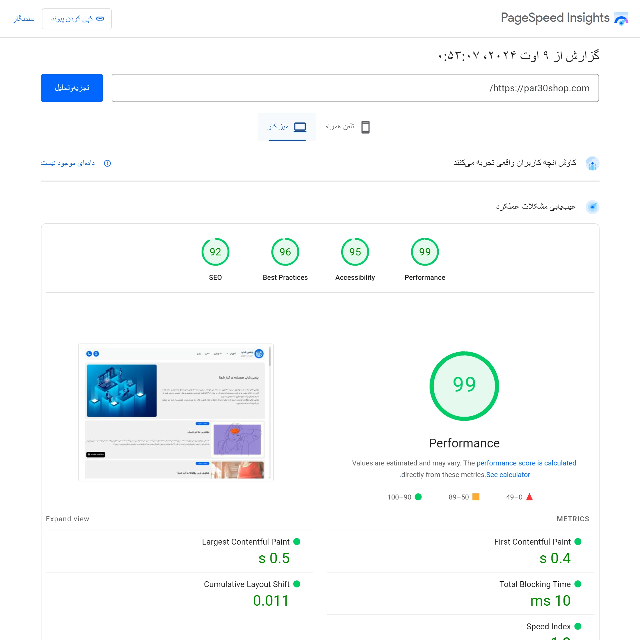 لیست نمونه کار های انجام شده برای افزایش سرعت