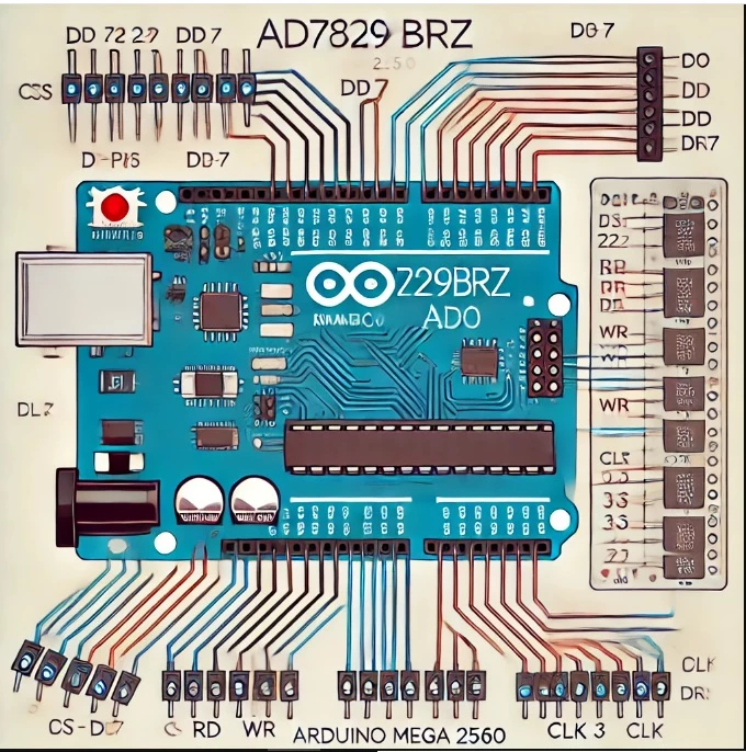 انجام كد نويسي نرم افزار Arduino براي adc آنالوگ دیوایس با پارت ad7829brz بوسیله آردویینو مگا۲۵۶۰ r3