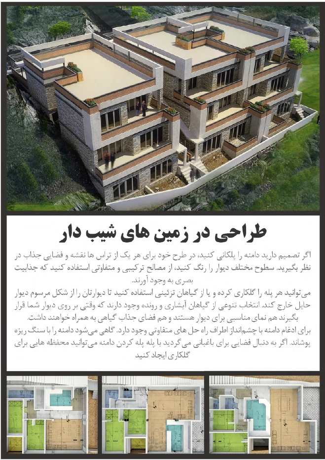 در بخش کن تهران، طراحی ویلای پلکانی تریپلکس