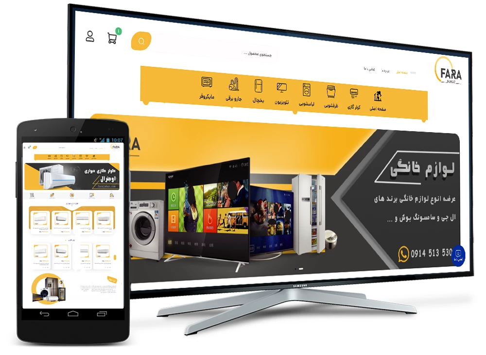 طراحی وب سایت فروشگاهی لوازم خانگی ، طراحی شده با قالب آماده و صفحه ساز المنتور و بنر های اختصاصی