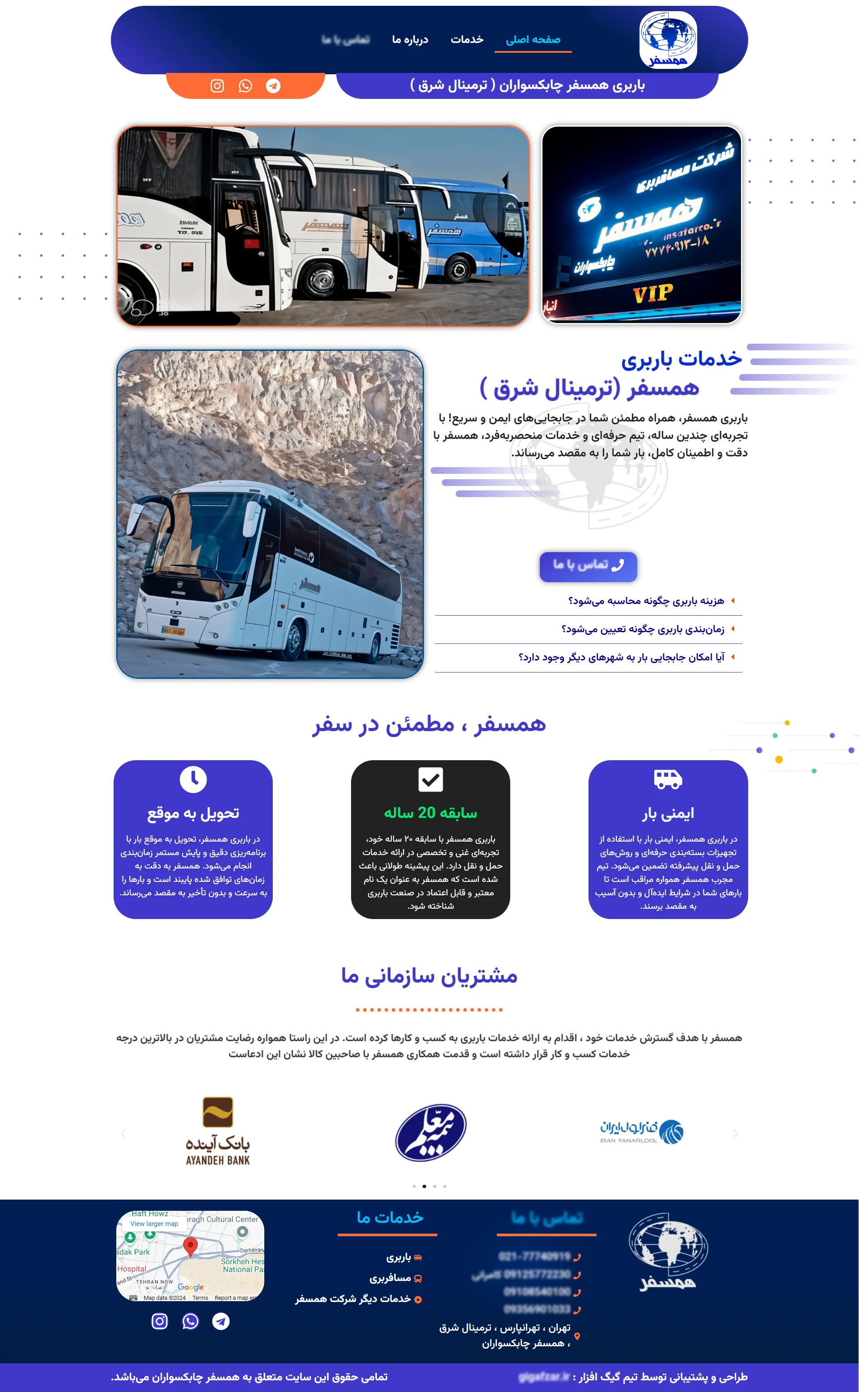 سایت شرکتی باربری همسفر چابکسواران طراحی شده از 0 تا 100 در وردپرس توسط المنتور و بدون قالب آماده