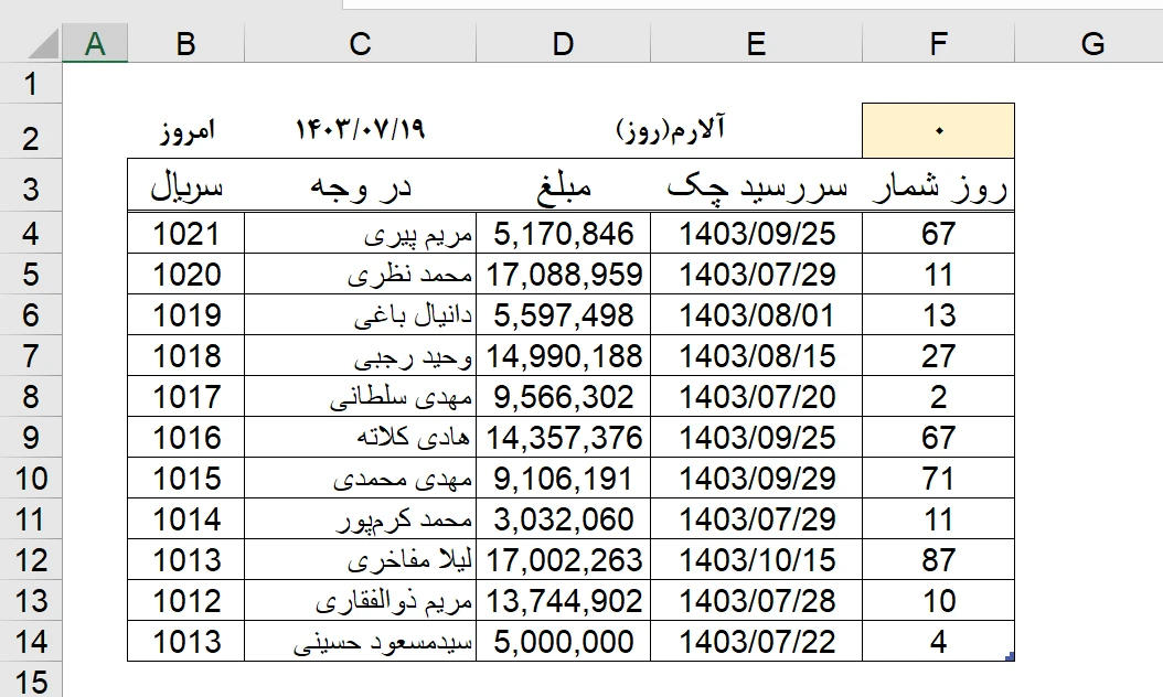 روزشمار و الارم سررسید چک