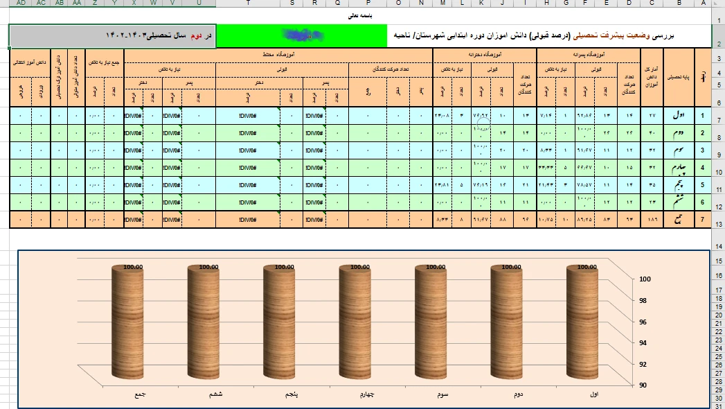 پروژه بر اساس پارامتر های تعیین شده کارفرما نمودار پیشرفت و انحراف معیار مربوطه را برای مقاطع مختلف تحصیلی محاسبه می کند